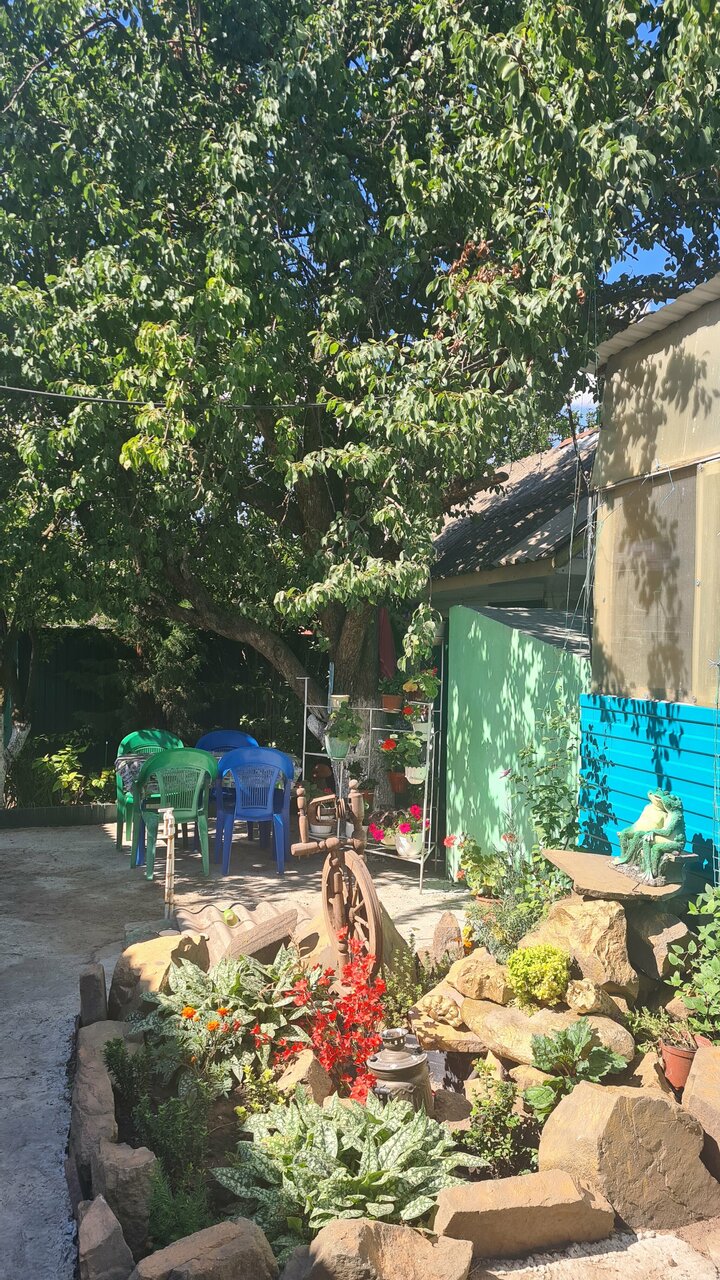 Были 16.07.24, ночевали по дороге на море. Все по-домашнему. Чисто, уютно. В комнате чайник, посуда, вентилятор, телевизор. Машину можно поставить во дворе. Сам двор красивый)