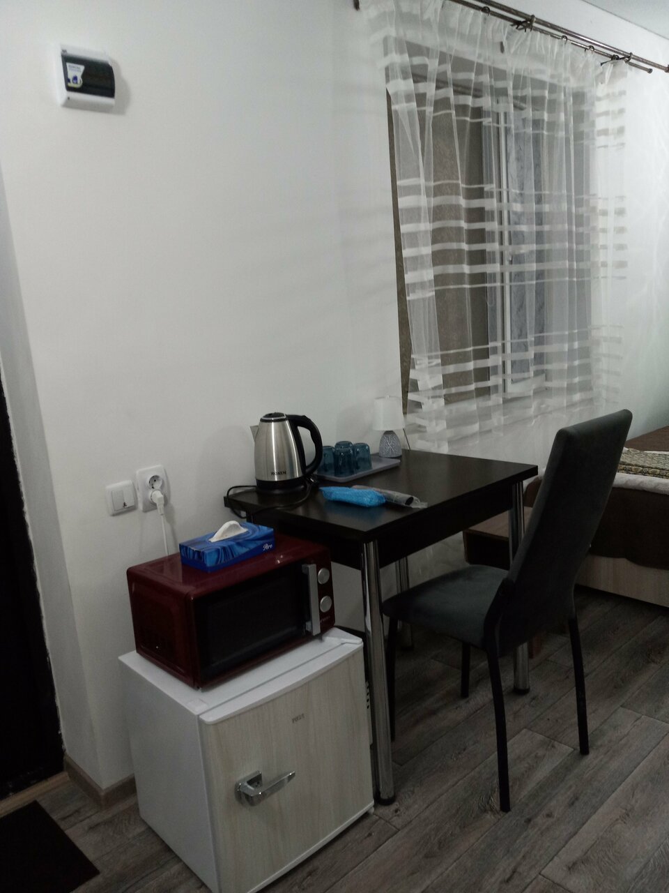 Спасибо хозяйке за гостеприимство! Цена адекватная и соответствует обстановке! Парковка у входа в номер, микроволновая, холодильник, телевизор и кондиционер! А что ещё нужно? Номер чистый, новый! Все столовые и магазины рядом были уже закрыты в 23:30!Хозяйка предложила угостить колбасой!А мы попросили хлеба(у нас была тушёнка) -спасибо, батончик очень выручил)))