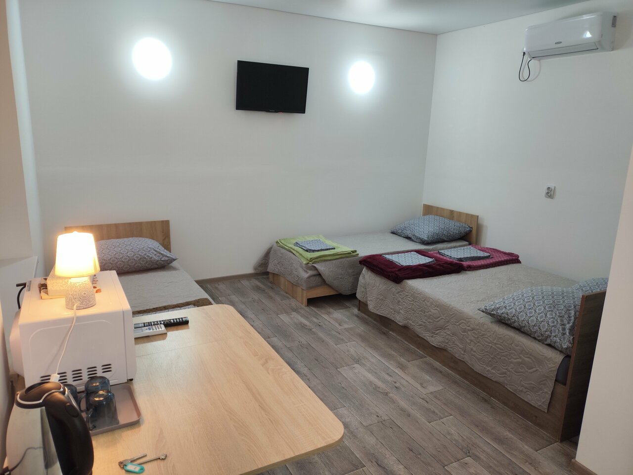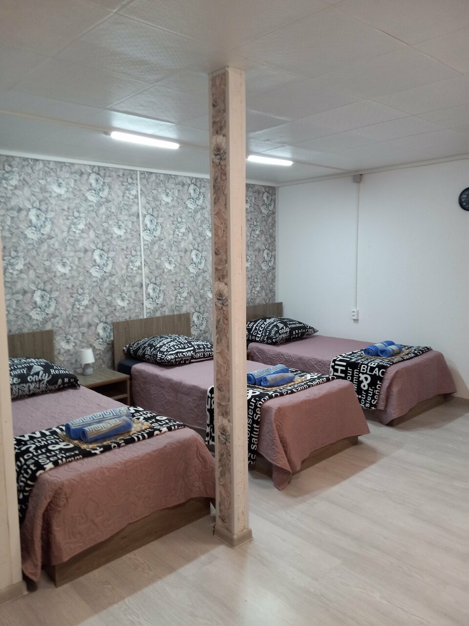 Чистый четырёхместный номер для нашей семьи на пять человек очень даже подошёл. Отдохнули с дороги, сходили в душ все классно. Номера чистые, волос и грязи от предыдущих гостей нет. Хозяйка приветливая, рекомендуем.
