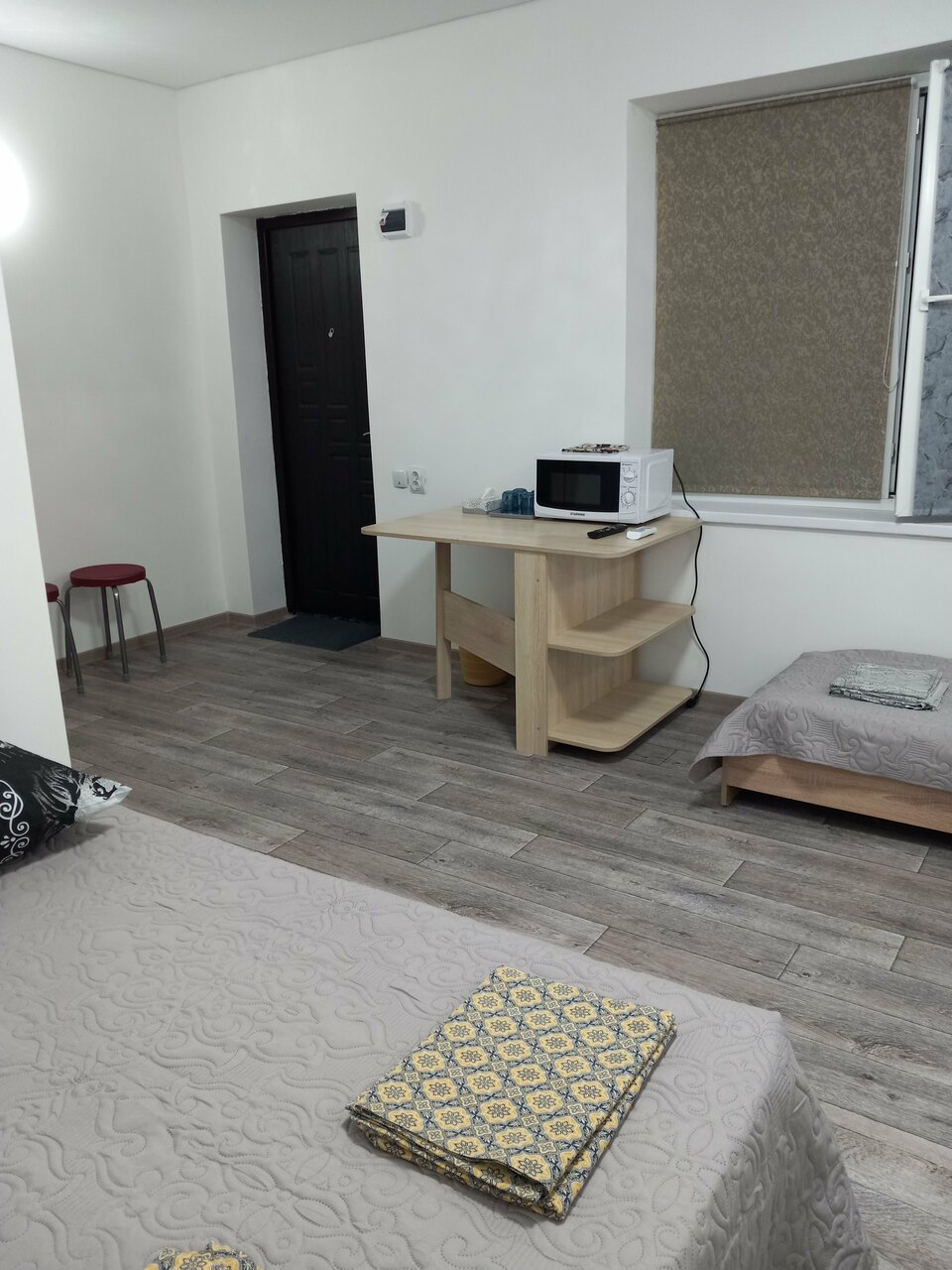 Чисто, просторно, есть тв, кондиционер, полотенца, салфетки, душ с туалетом, чайник. Парковка на территории. Очень радушные хозяева, приятно было у них остановиться. Что для нас немаловажно, хорошая звукоизоляция- не слышно соседей, прекрасно выспались. Заехали поздно ночью, и хозяева позволили выехать после 12ти. Одни плюсы, минусов нет. Рядом есть кафе, которое работает с 6ти утра Все новое.