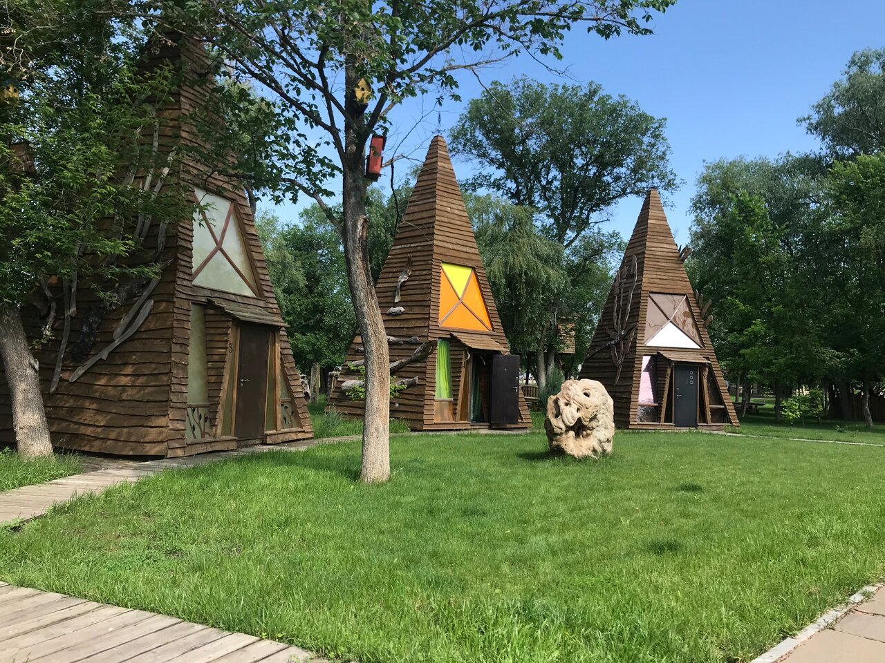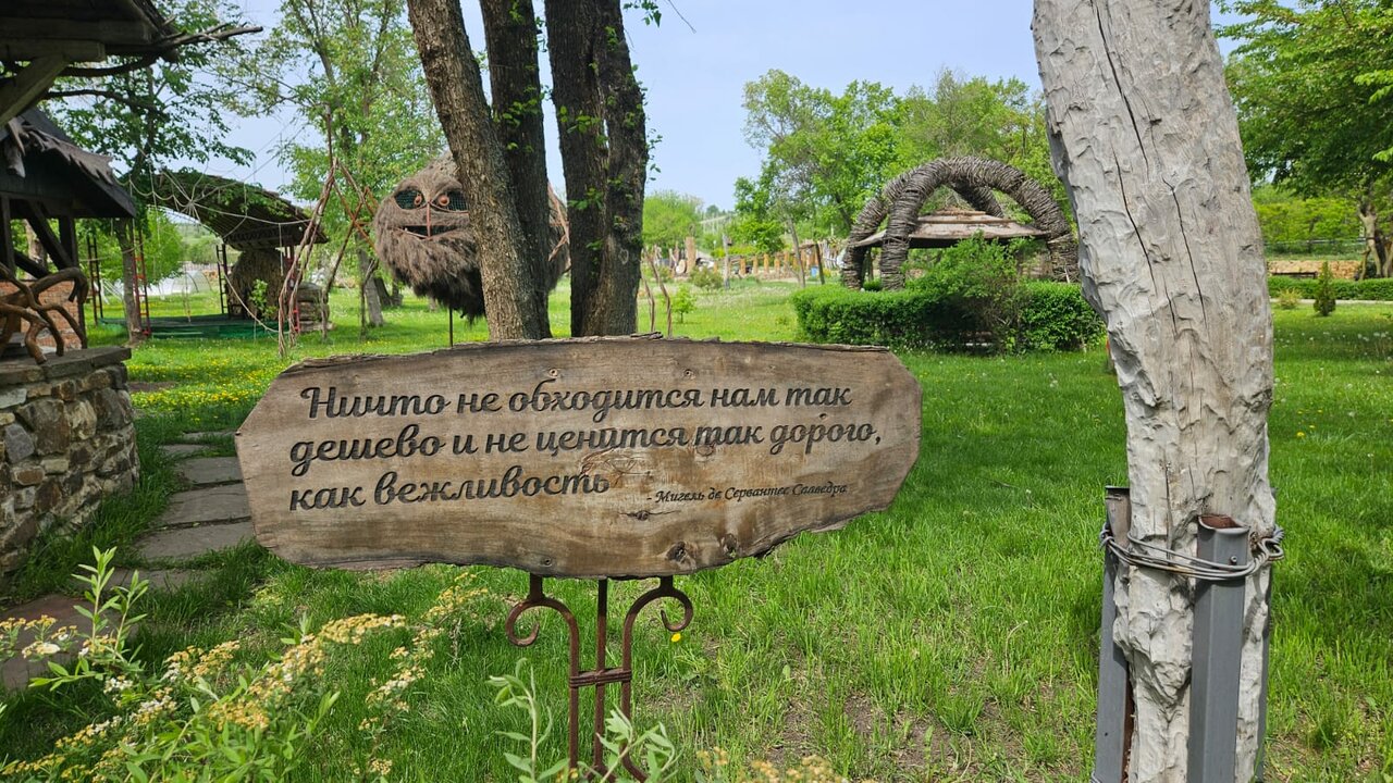 Очень интересное место! Восхищает своими интересными скульптурами! Всё экологичное! Необыкновенные гостиничные домики, очень много места для отдыха! Всё чисто и приятно волшебно! Бесплатно! Благодарю за такое место!