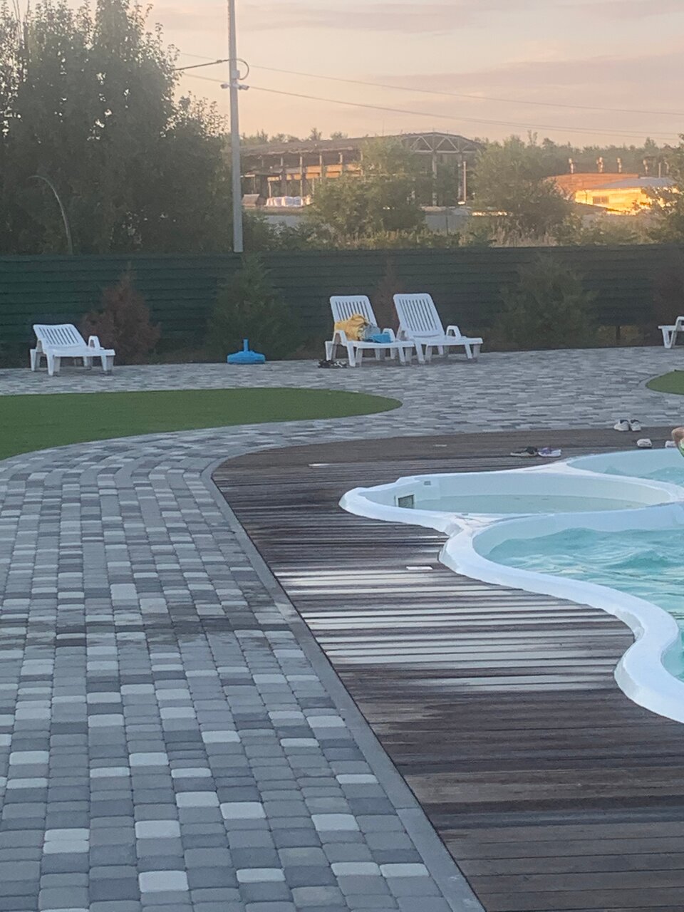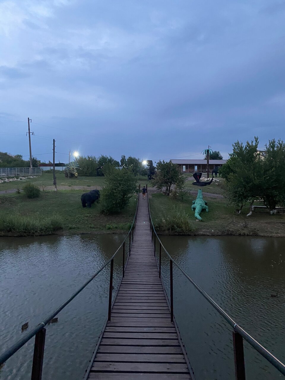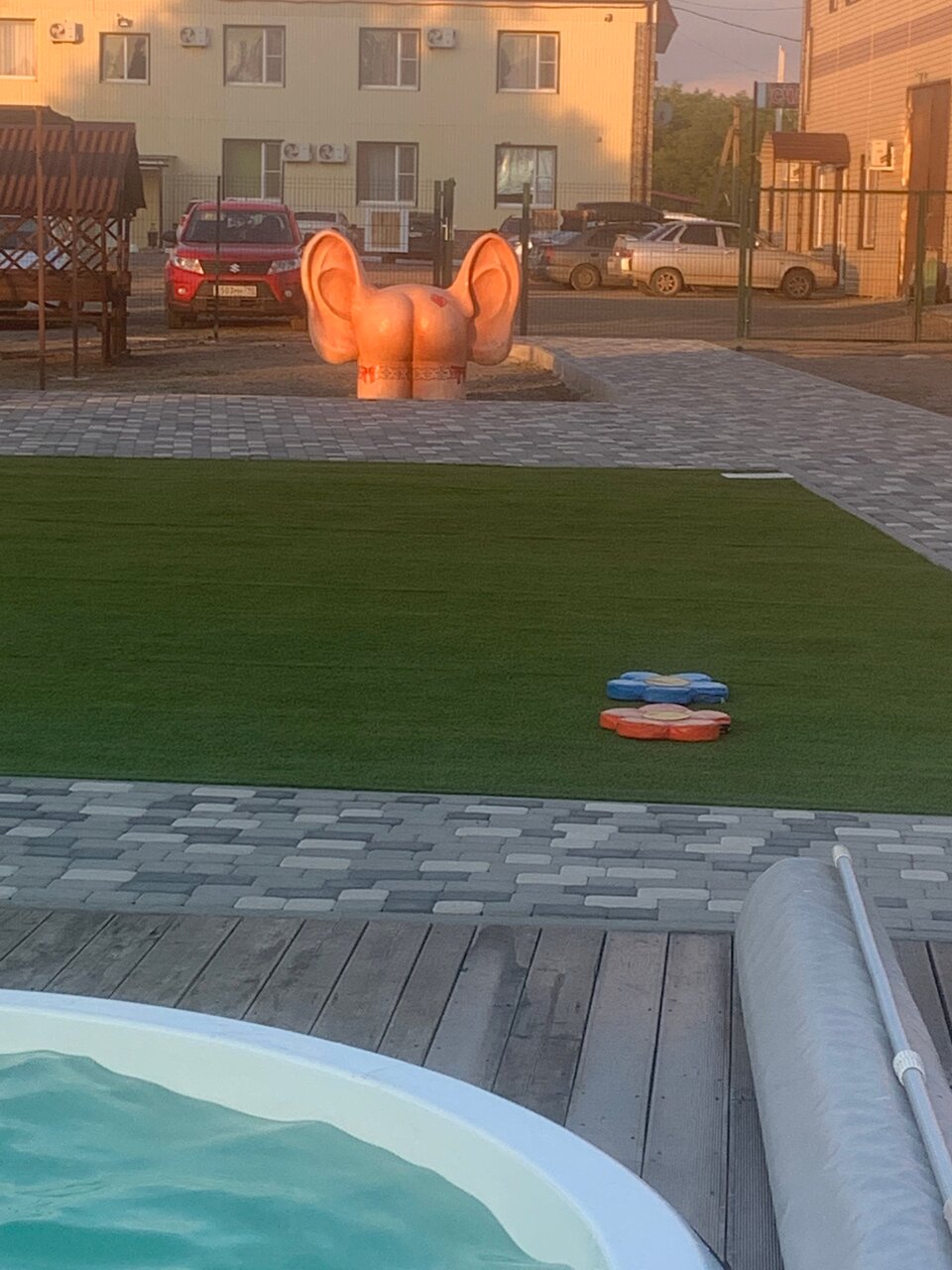 Отличное место, ехали в Ейск семьёй. Остановились в этом отеле. В номерах все просто, не ждите роскоши. Главное это большой парк, оде дети могут много бегать. После 9 часов пути дочка бегала и каталась пока не стемнело. Уснула за 5 минут. Много горок и развлечений для детей. Советую для семей с детьми- можно остановиться с долгой дороги и оторваться после поездки детям)
