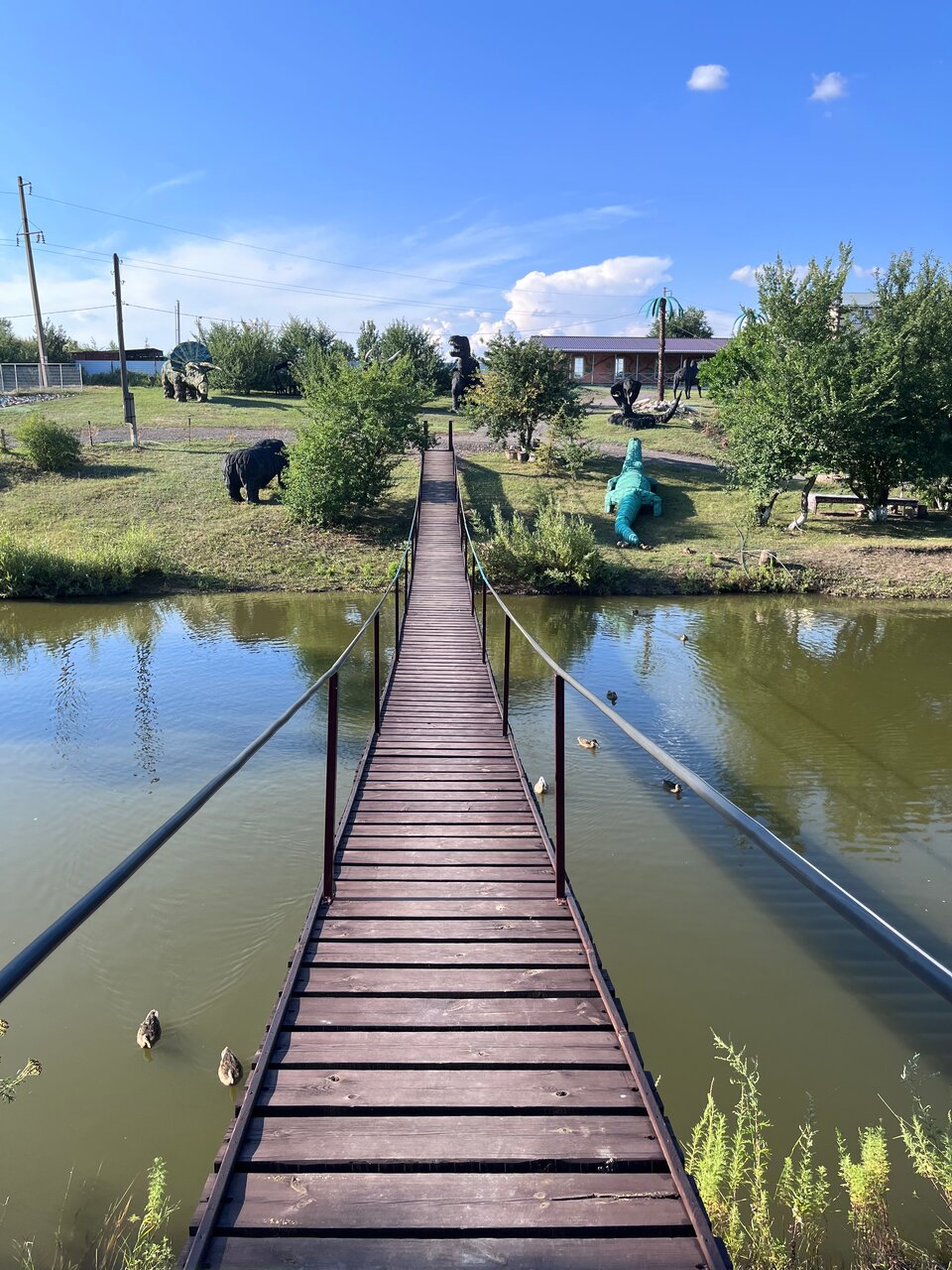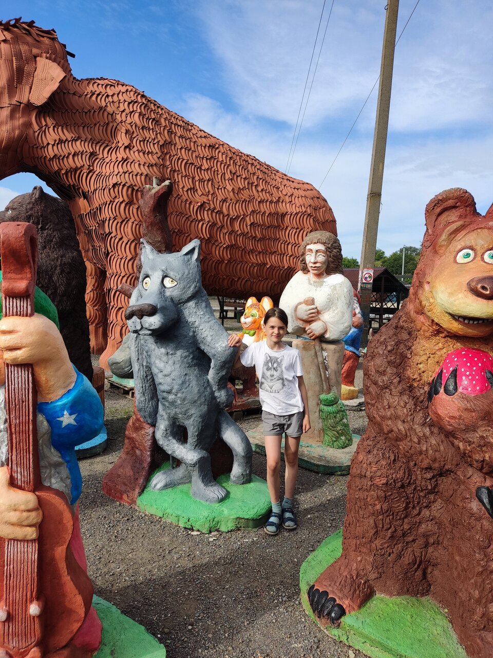 Отличное место, особенно сам парк. В гостинице были в корпусе лето, все чисто, есть кондиционер, в номере тихо, правда у нас был второй этаж, никто над головой не ходил. Трассу тоже не слышно. В кафе вкусно кормят, еда разогретая, но все равно вкусная. Бассейн работает с 10 до 20 так что кто останавливается только переночевать туда не попадет. В парке гуляли часа 2, дети везде лазали, играли, катались с горки. Скалодром не работает, т.к нет инструктора и там только со страховкой. Сами скульптуры очень классные и огромные, хотя бы раз это стоит увидеть.