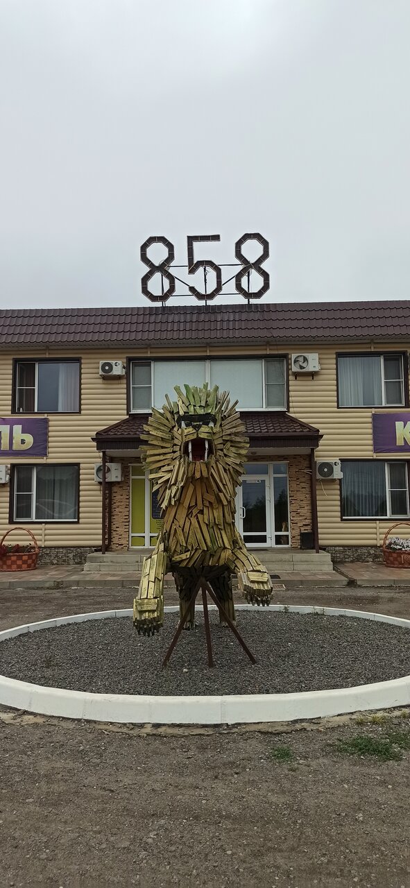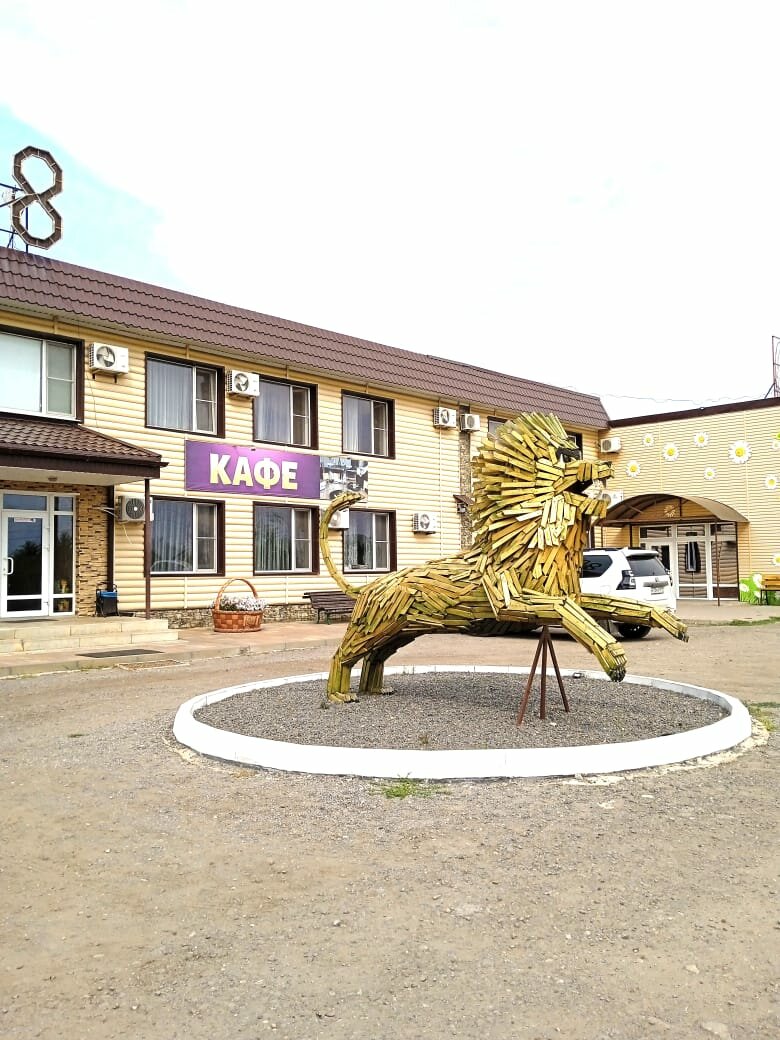 Замечательная гостиничка! Персонал гостиницы приветливый. У нас в стоимость номера входил вполне сытный завтрак. В нашем номере было немного душно, а в остальном все отлично: белье чистое, приятное, есть холодильник, фен, все аккуратно. Территория около гостиницы-это отдельная песня! Хочется не просто переночевать, но и погулять. Есть небольшой зоопарк, пруд, у точки, деревянные домики, скамейки. А ещё есть множество фигур, сделанных из обыкновенных автомобильных шин. Организаторы гостиницы- огромные Молодцы! Из шин есть фигуры динозавров, различных животных и даже есть мамонт. Просто чудное место! Всегда здесь останавливаемся по дороге на юг!