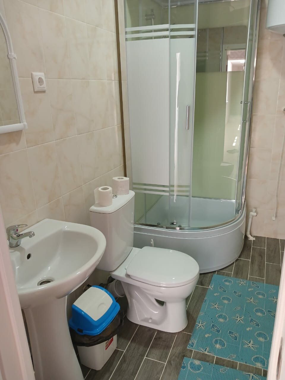 Чистые туалет и душ, большая комната, все новое, хорошо отдохнули, выспались. Приветливо персонал