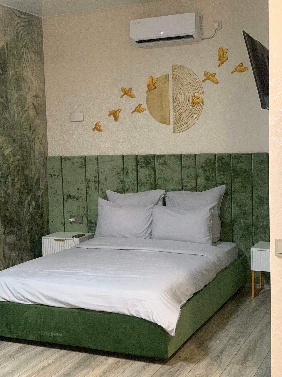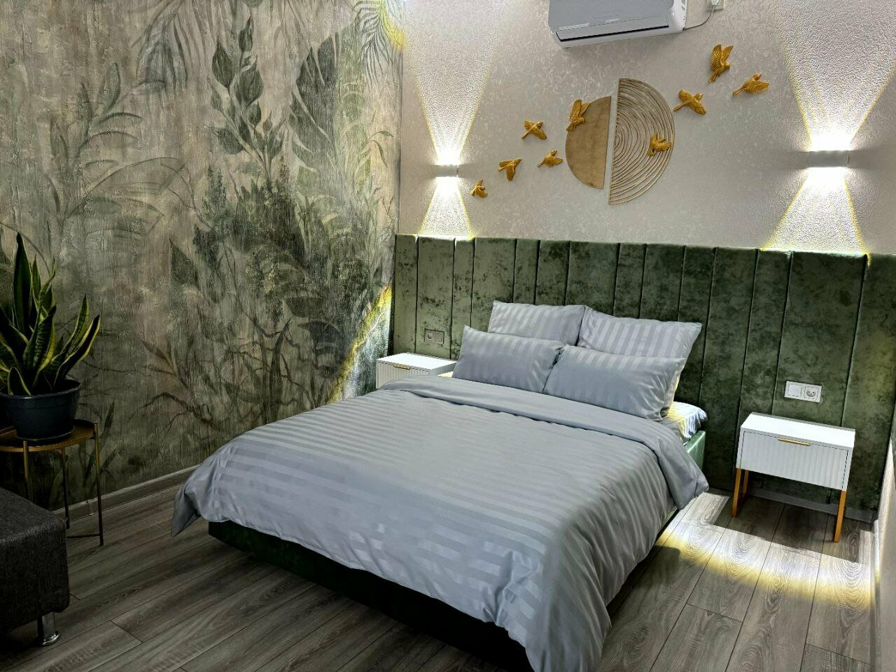 'ЭКО' - уютный гостиничный номер, оформленный в нежных зелёных оттенках, которые создают атмосферу спокойствия и гармонии. Стены украшают настенная роспись тропического леса, что добавляет нотки искусства и природы в ваш отдых.Большая двуспальна...