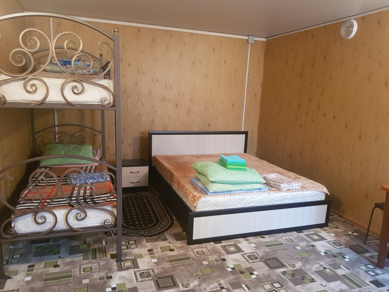 Цена зависит от сезона и продолжительности отдыха.Подробно можно узнать на нашем сайте http://anapa-zm.ru/4mest/4-х местный полулюксВ номере: двуспальная кровать + раскладной диван (либо двуспальная кровать + две односпальные), стол, тумбочки, шк