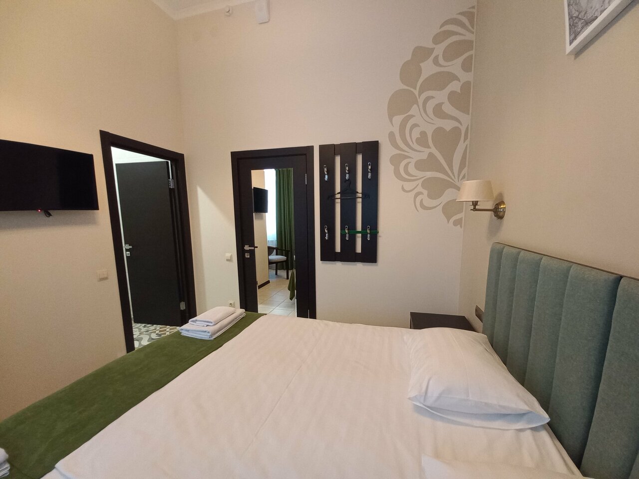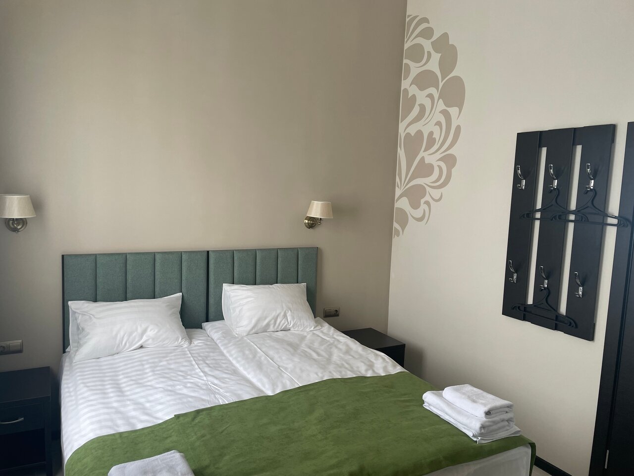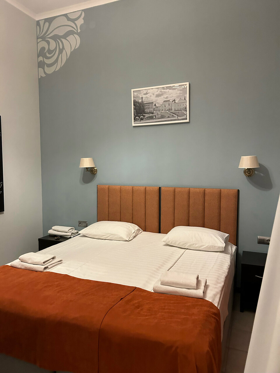 Услуги: — Номера с кондиционером, санузлом, звукоизоляцией, Wi-Fi, телевизором, холодильником, чайником и микроволновкой. — Бесплатная парковка, пандус, фен, утюг, уборка. — Время заезда — 14:00, выезда — 12:00.
