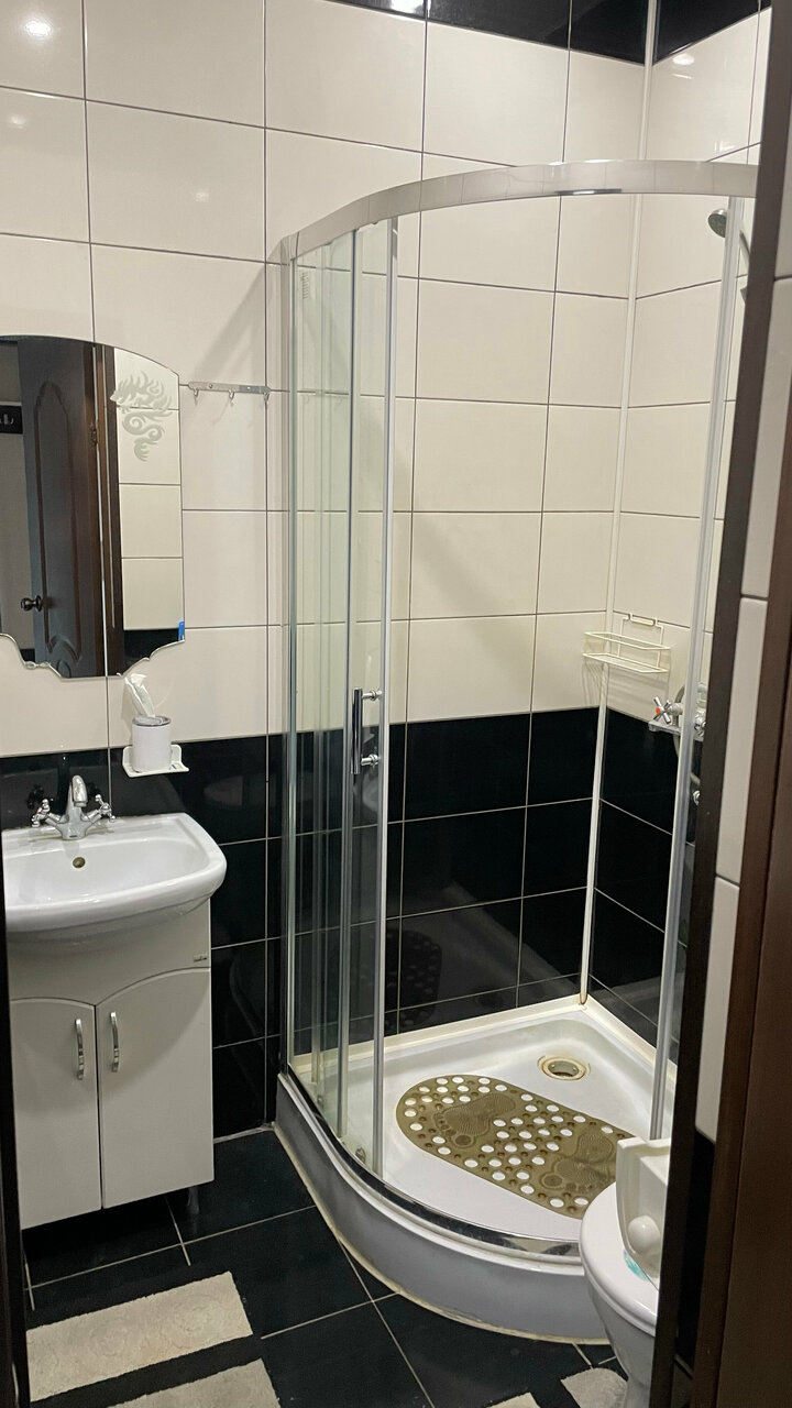 3-х местное размещение в комнате.Все удобства: телевизор, кондиционер, душ, туалет, шкаф для вещей.Свежий ремонт.Просторная кухня со всеми принадлежностями