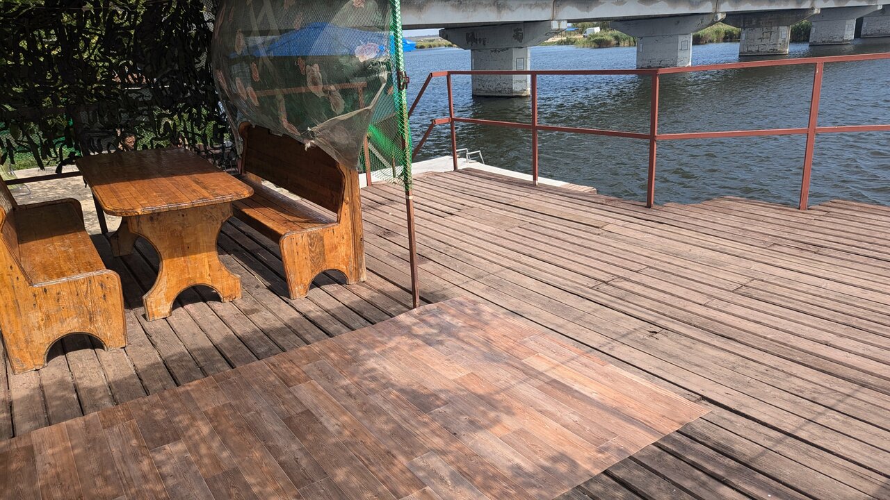 - Адекватная цена.; Милый питомец (песик, котики).; Наличие бани, лодок, катамарана.; Приятное обслуживание.; Хороший вид на воду.