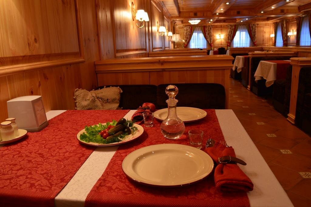 Очень антуражное место, ресторан аутентичный, с едва уловимым запахом сосны и историческими блюдами. Красивое место, очень адекватные цены, вежливый персонал. Остановились бы там в отеле но для пикапа с прицепом не нашли возможности в плане парковки. Однозначно рекомендую