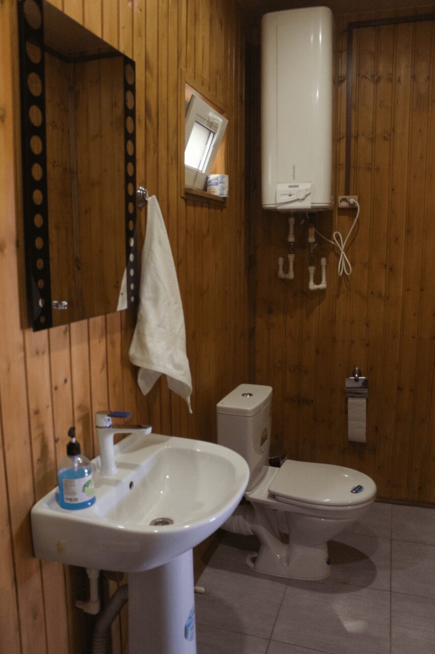 Отличные номера, приличная общественная кухня с раковиной(горячая и холодная вода),каменным барбекю,газовой плитой. Территория небольшая,но чистая и уютная. В номере холодильник,телевизор жк, душ,туалет,свой бойлер.Рядом продуктовый магазин. Жили 2 ночи. Нам очень понравилось, цена-качество соответствует.