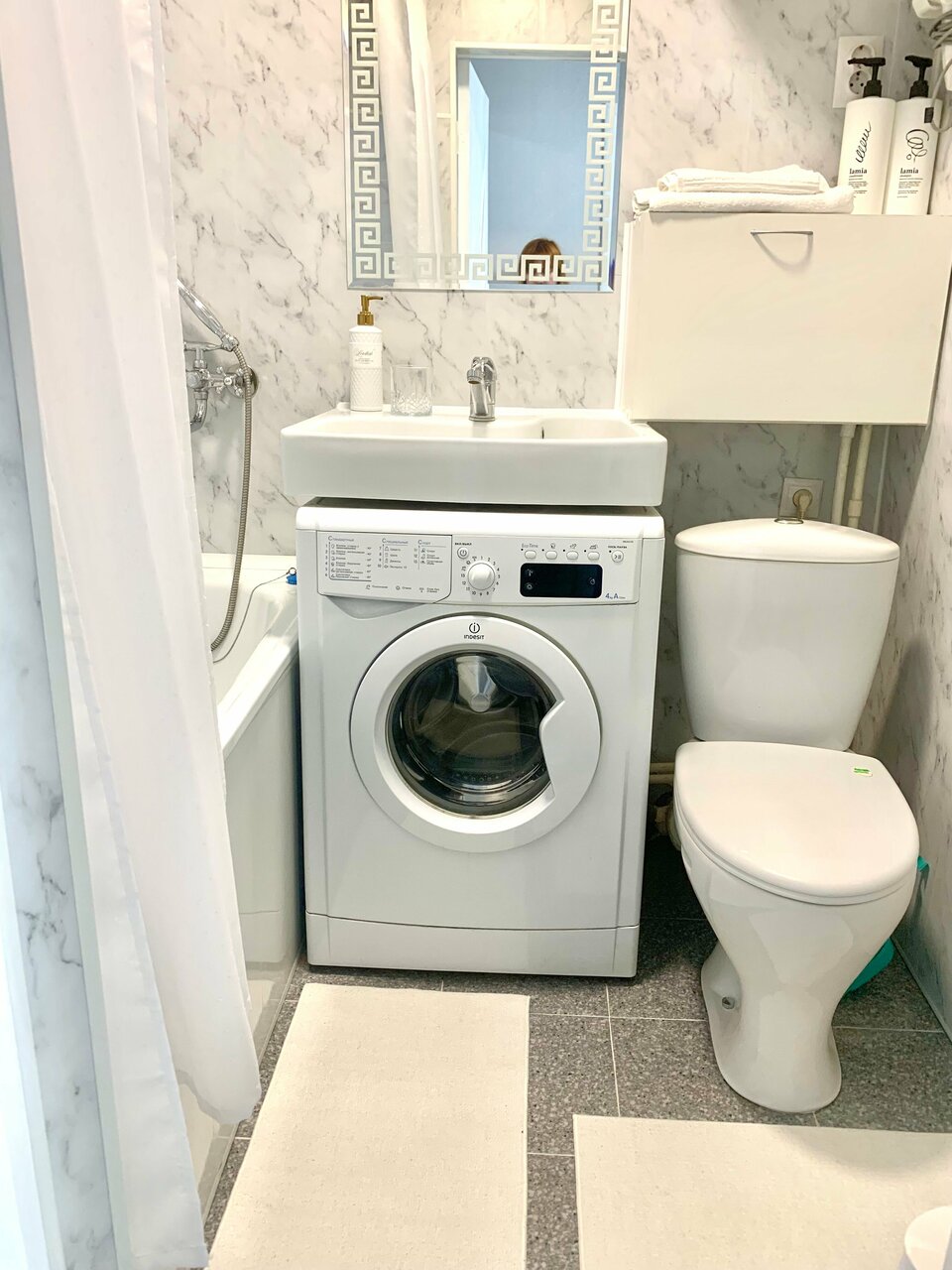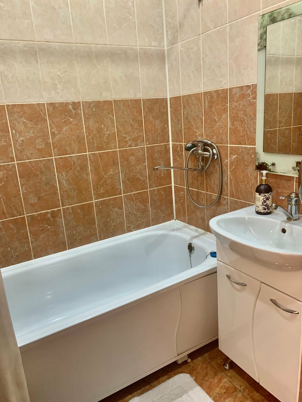 Квартира на Мира на 1 этаже в приличном виде, все чисто, была осенью, когда еще не включили центральное отопление. Спас теплый пол. Единственное неудобство — слышно грохот из мусоропровода, когда мусор выбрасывают, только за это минус 1 балл.