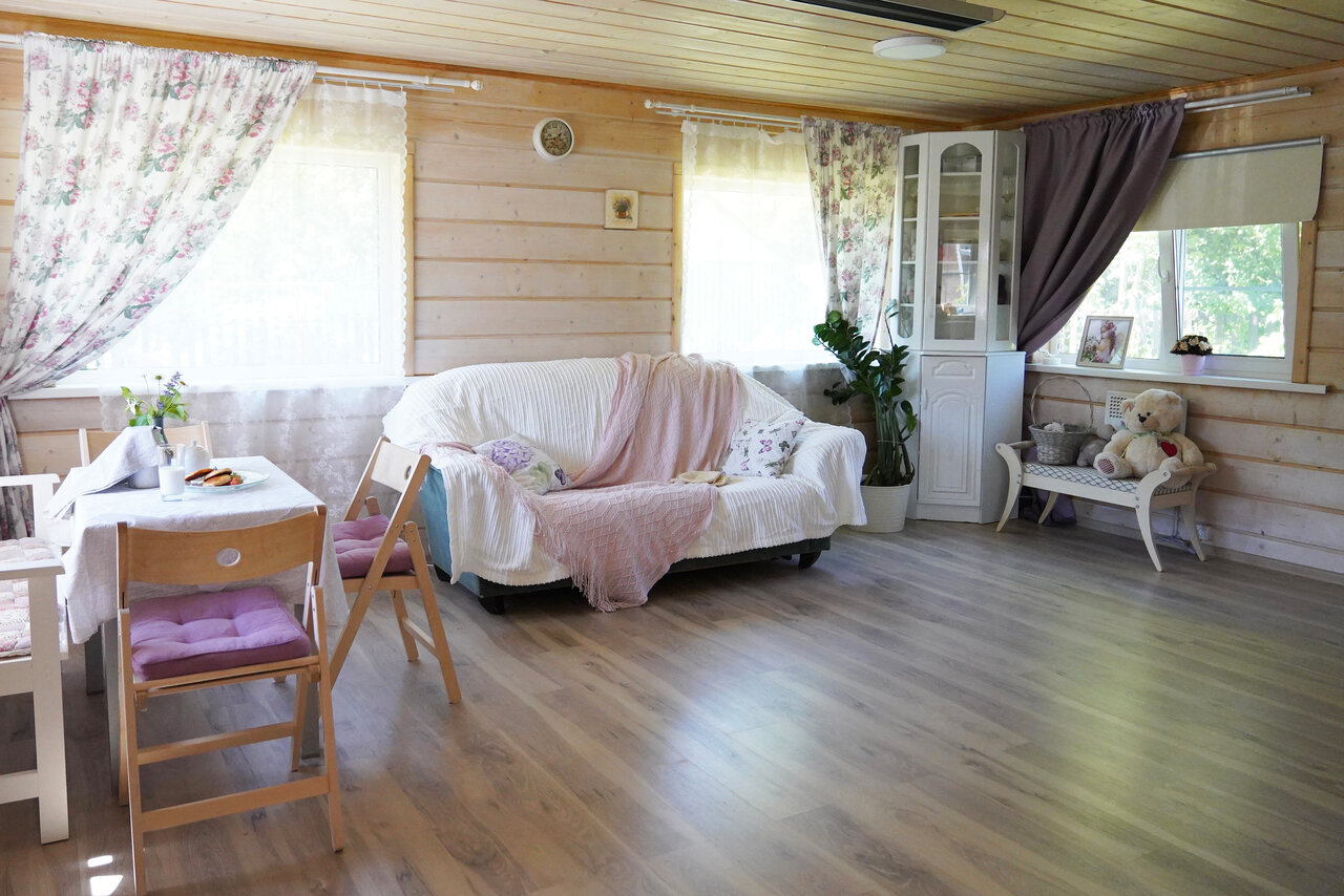 Для отдыха доступны детская площадка, зона для пикника, баня и летняя веранда. Размещение с животными разрешено. Цены за ночь — от 3500 до 5000 ₽.