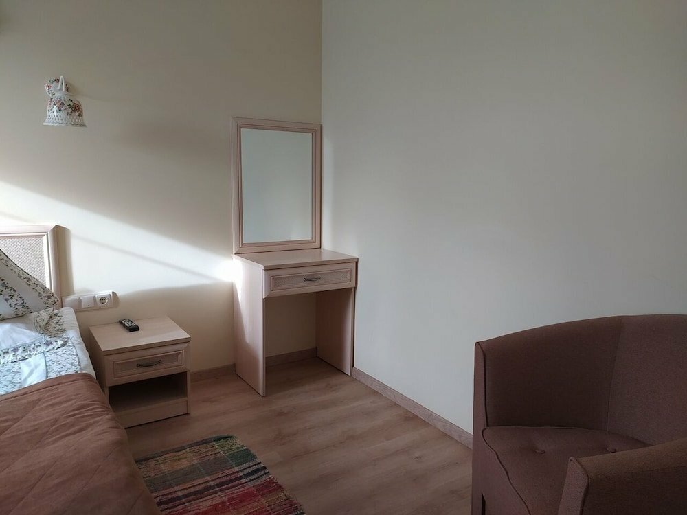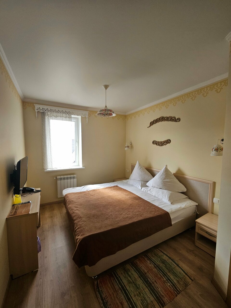 Очень понравилась ! Удобное расположение, парковка рядом, Мебель в номере- массив, рядом с монастырем, чистейшая территория и что удивило, прям во дворе стоял мобильный пункт вакцинации! Постоянно стояли желающие привиться!