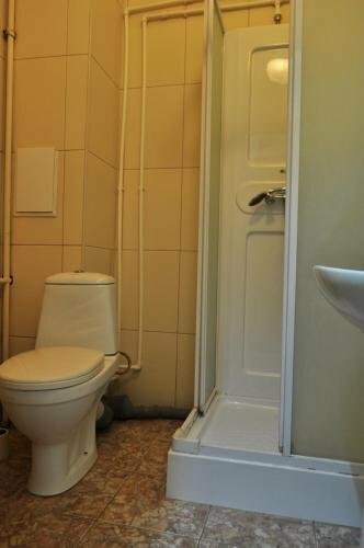 Номера маленькие, пол весь в белом налете. Ванная комната маленькие.В номерах нет стаканов, тапочек для гостей, подушки вообще не понятно что. Цены за номера завышенны. Цена номера не соотвествует качеству.