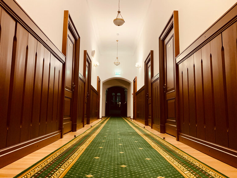 Хорошая гостиница, а старинном здании, уютно, чисто, тепло (были в начале октября помещение отапливается), расположена на территории за шлагбаумом, есть большая парковка, администатор очень приветливая женщина, заселила быстро, ответила на все наши вопросы, большое ей спасибо.