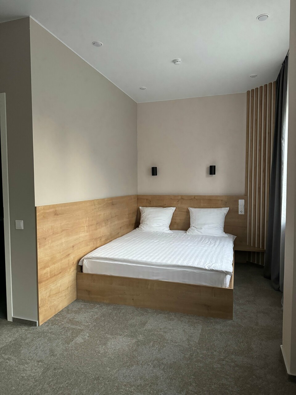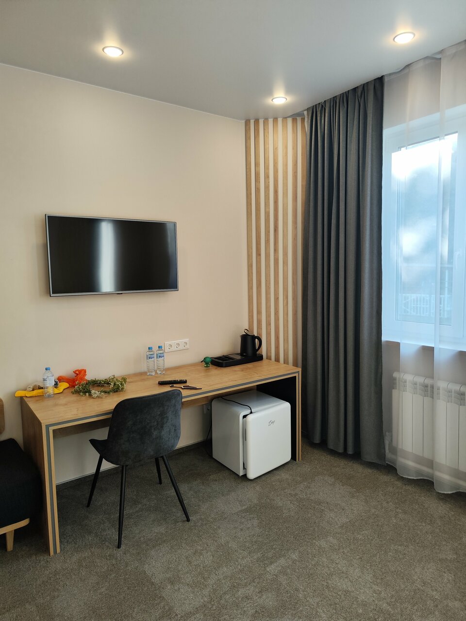Прекрасный отель! Отличный уровень для небольшого города. Все новое, чистенькое, отличное постельное белье и матрас. При отеле хорошая кулинария, все что брали было вкусным. Работают хорошие и приветливые люди. Советую для отдыха, не пожалеете.