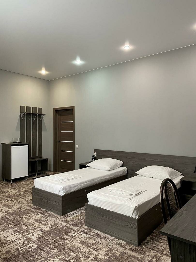 Отличная гостиница! Новый, качественный ремонт. Хорошие кровати, хороший матрас. На втором этаже есть обеденная зона. Есть парковка для автомобилей. Вежливый персонал.