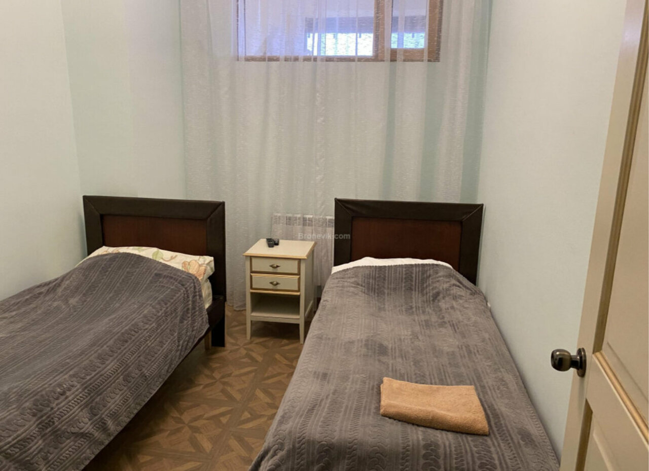 Номер с двумя односпальными кроватями, собственной ванной комнатой, телевизором, Wi-Fi и индивидуальным отоплением.Возможна установка дополнительного места - 1000 руб.