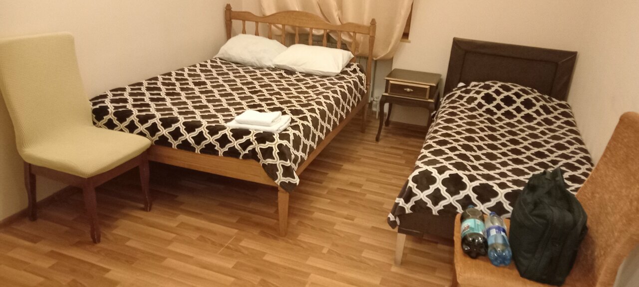 Просторный номер с одной двуспальной и одной односпальной кроватями, собственной ванной комнатой, телевизором, Wi-Fi и индивидуальным отоплением.Возможна установка дополнительного места - 1000 руб.