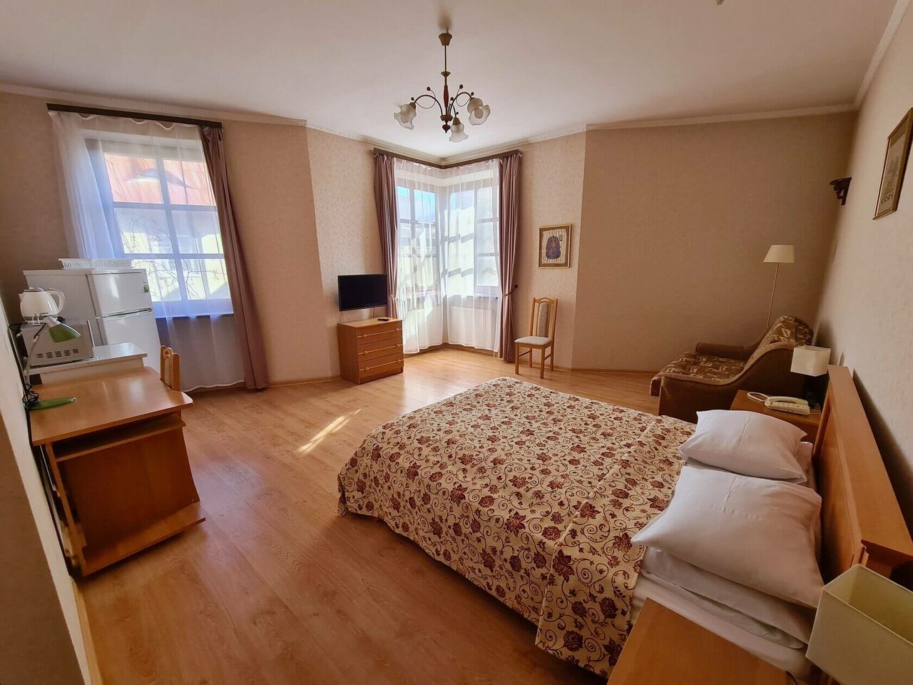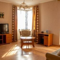 На мой вкус то, что надо! Атмосферно. Связь с историей. Гостиничный комплекс в окружении таких же красивых, разных домов. До магазинов рядом. До остановки общественного транспорта рядом. Ночи тихие. Воздух свежий. Номер уютный. Очень плюс, что есть отдельная кухня как дома и полноценный санузел с ванной. Домашняя обстановка. На таких больших плюсах хочется чуть-чуть добавить: коврик у ванны, ножное полотенце, коврик у кровати, телевизор в кухни. Перечисленные капризы, только рекомендации для повышения уюта. И главный фактор, лучшая цена проживания. Рекоменду!