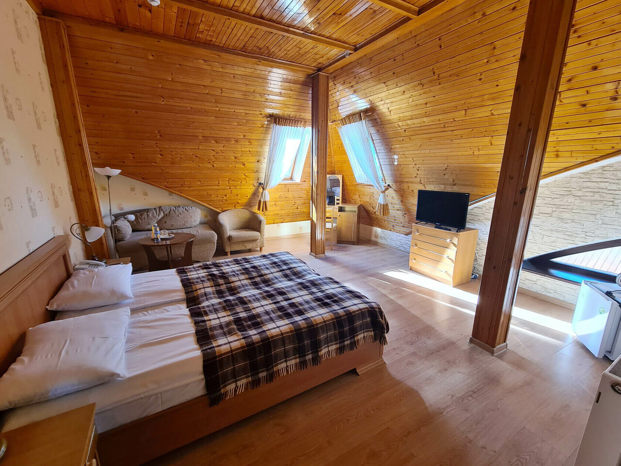 Проживание в комплексе жилых комнат 'Альбертина'. Просторная спальня и гостиная комната, обе комнаты с балконом. Собственная большая ванная комната.Стоимость указана за проживание одного человека в сутки. Стоимость двухместного размещения - 5500 ...