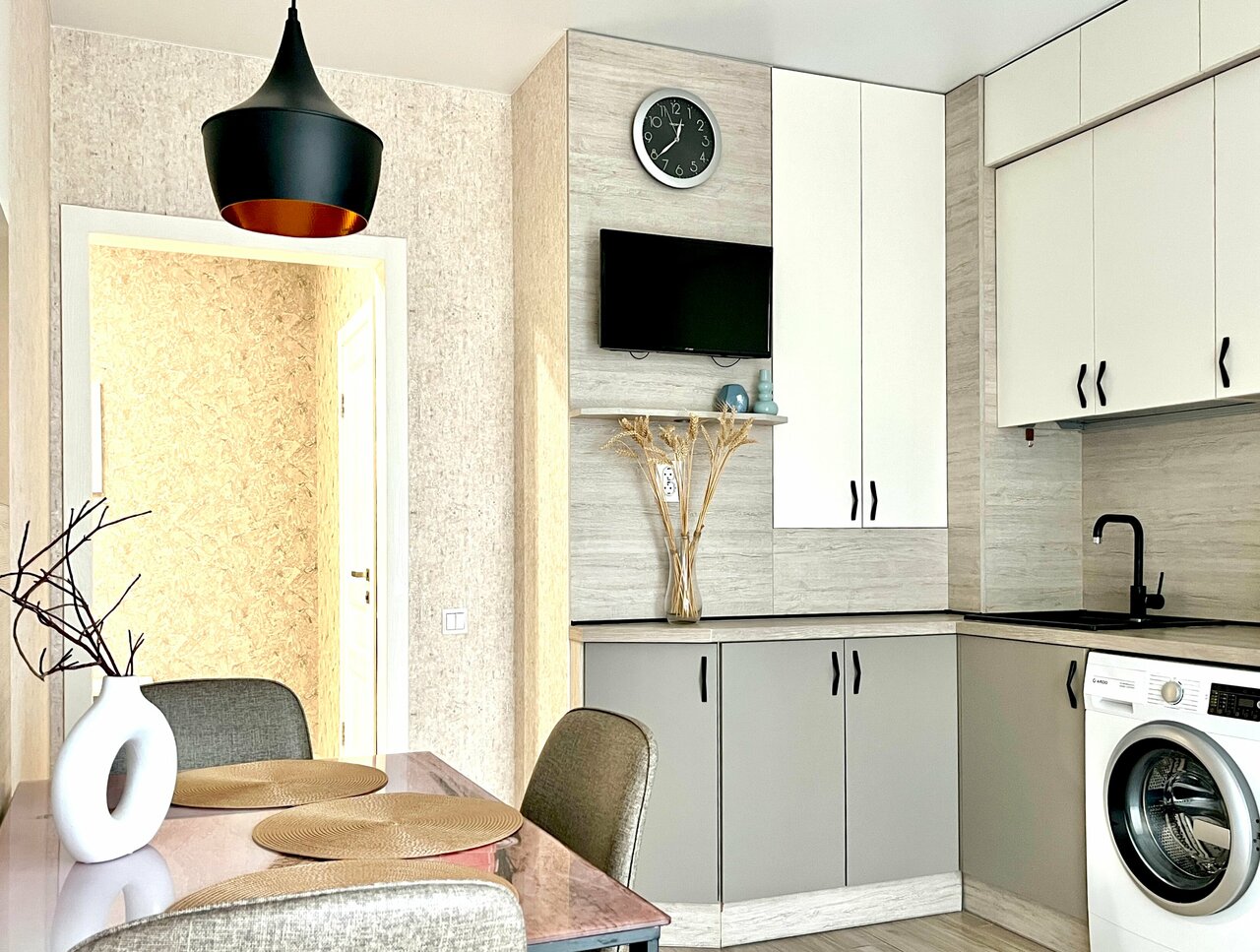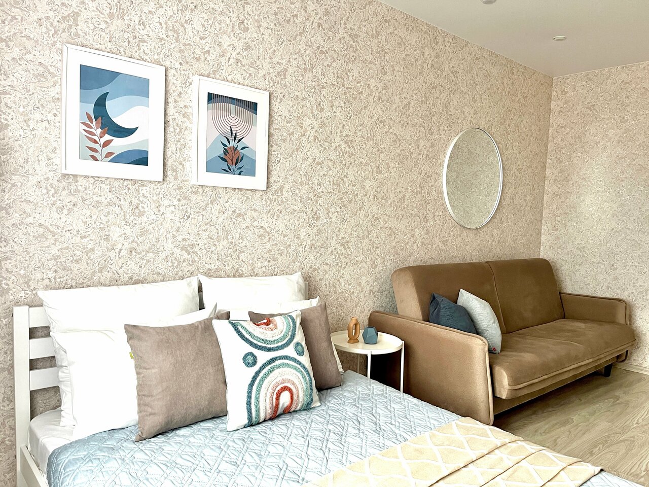 Отличные апартаменты! Расположены в новом ЖК со своей закрытой территорией, на которой огромная детская площадка. На первом этаже супермакет и кофейня со свежей выпечкой. Апартамены просторные, новые, чистые со всем необходимым для комфортного пребывания. В пешей доступности все основные достопримечательности. Совсем рядом Нижний пруд, 10-15 минут пешком до о. Кантата и Рыбной деревни, также 15 минут до Верхнего пруда. Хозяева очень дружелюбные! Спасибо большое!