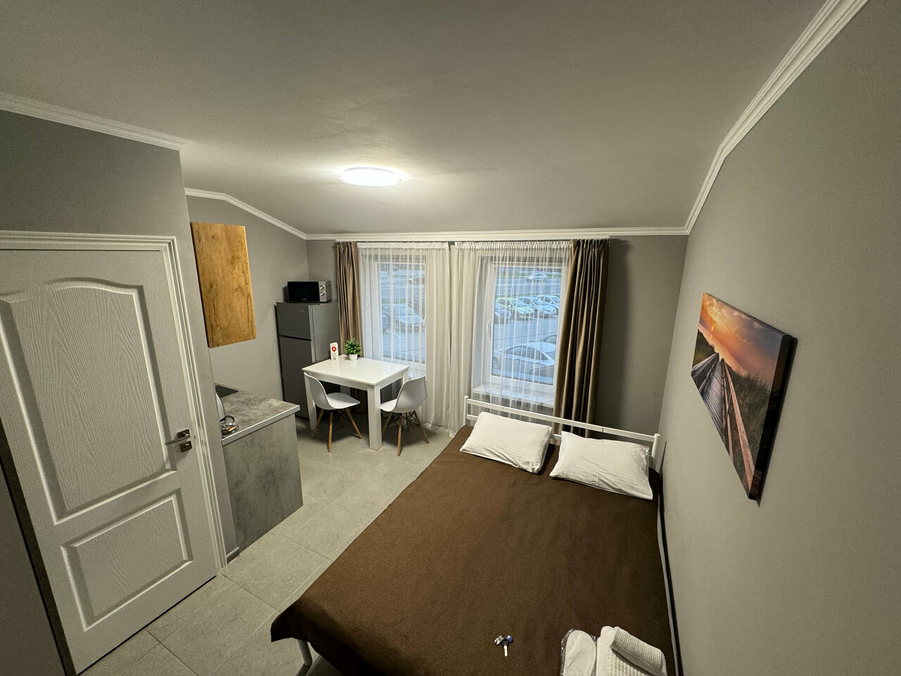 Двоякое впечатление. Сами апартаменты вроде неплохие, внутри аккуратно, но расположение… Это далеко, траты на такси покрыли бы проживание в центре. Но и это не главное, а главное — это окна на трассу, парковку. Об этом, мне кажется, нужно предупреждать. Находиться в постоянном шуме от трассы и сигнализаций на парковке — сомнительное удовольствие, если ты не дальнобойщик. Душно в номерах, окна закрывать не вариант. Одну ночь переночевать ещё можно, но жить продолжительно… Какие-то номера выходят во двор, но по какому принципу распределяют брони — непонятно. Хотела переселиться, потому что люди выезжали, но нельзя. Хотя какая разница, если цена едина. В итоге меня хватило на три ночи из недели, взяли ещё штраф больше 3 тысяч за то, что я не дожила весь срок до конца и съехала.