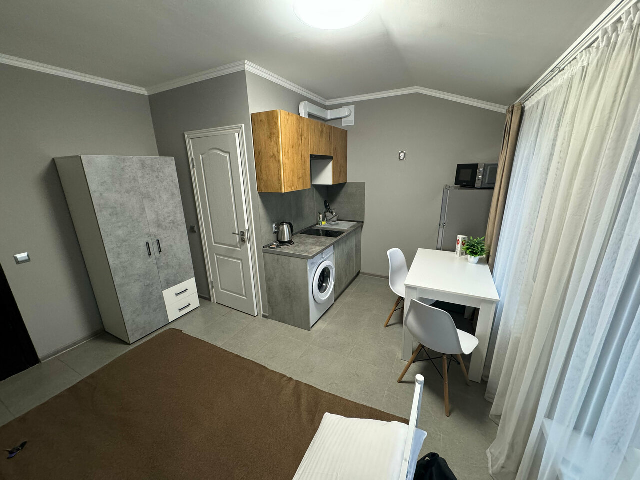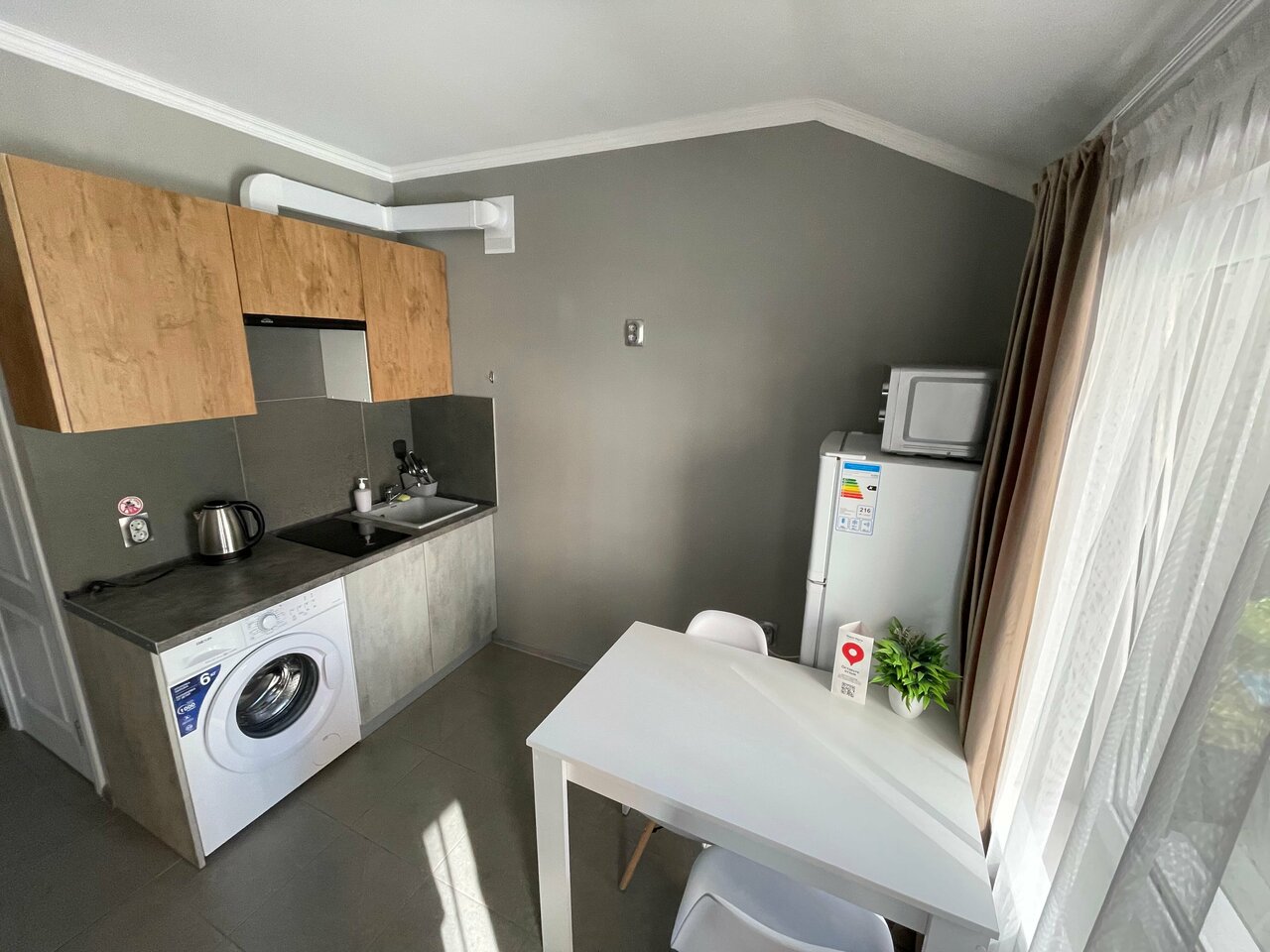 Очень понравилось. Чистый, уютный номер, в котором есть всё необходимое для комфортного проживания (холодильник, микроволновка, плита, чайник, стиральная машина, фен). На территории есть парковка и детская площадка. Рядом магазин Пятерочка, возле магазина автобусная остановка. До центра на автобусе ехать минут 30. Одна остановка на автобусе или 25 минут пешком до жд/с Кутузово-Новое, от которой до Зеленоградска 20 минут. Бесконтактный въезд/выезд удобен. На все вопросы оперативно отвечают по WhatsApp.