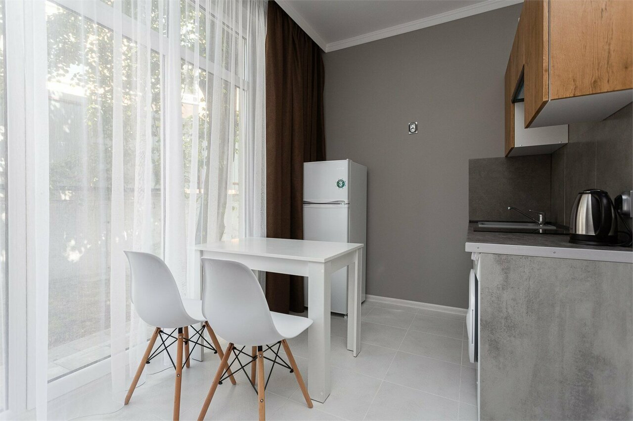 Отличные апартаменты! Останавливалась весной, номер был замечательный, есть всё необходимое для проживания (холодильник, микроволновка, плита, стиральная машинка), ванная комната чистая и опрятная. Персонал приветливый и отзывчивый, особенно Надежда — помогла расположиться и была на связи по любым возникающим вопросам. Все очень понравилось, однозначно рекомендую!
