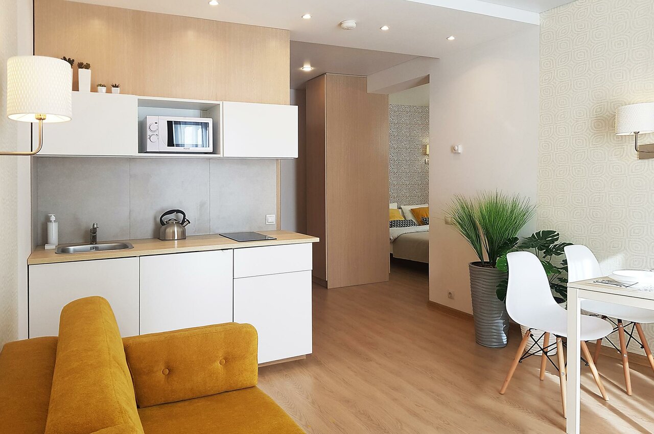 Бронировали на 5 дней, очень понравилось. В апартаментах есть все необходимое, чтобы приготовить еду, через дорогу — продуктовый магазин — далеко ходить не надо. Пространства много, если на двоих — идеально. Очень уютное, тихое и спокойное место. Уборка каждый день. По транспорту — рядом остановка, и автобусы, и маршрутки ездят часто, до центра минут 10-15 без пробок.