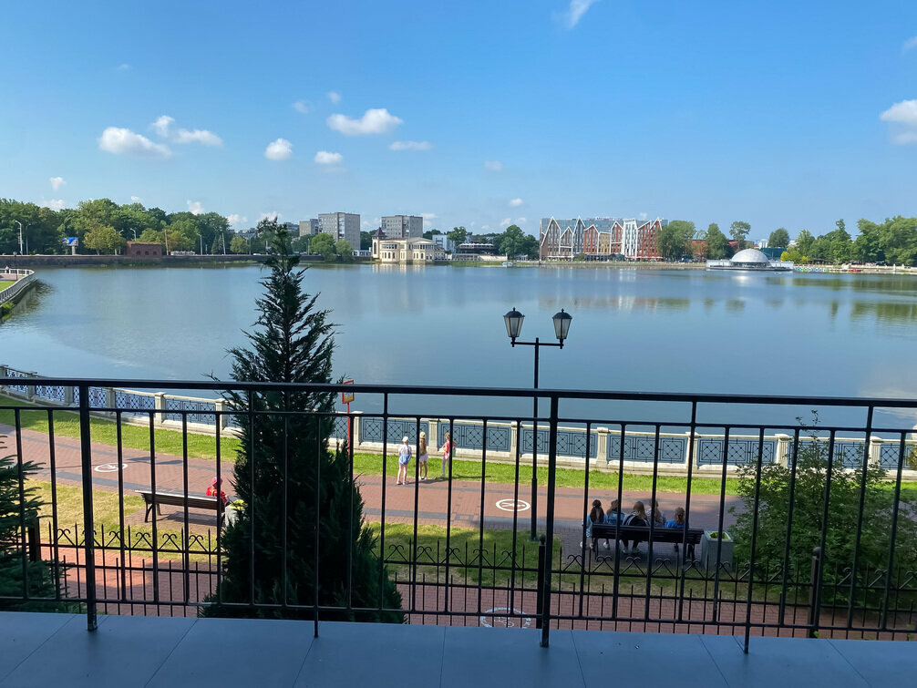 Потрясающие апартаменты в тихой части Калининграда у озера! В двух минутах ходьбы Башня Дона с музеем Янтаря. До Рыбной деревни буквально 30-40 минут пешком прогулка, на трамвае вообще минут 15. Сами апартаменты располагаются на закрытой территории дома на высоком первом этаже за несколькими оградами. Мы жили в комнате ‘Риверсайд’ с террасой с видом на озеро и прелестную набережную. Все удобства в номере есть: плитка, чайник, кофемашина, полотенца, душь, фен, шампунь и проч. Минусов практически нет. Пожалуй, мы привыкли к б’ольшему количеству посуды, но необходимый минимум есть. И нам не хватило какой-то поверхности в ванной (полки или столик у раковины. Раковина одна, в ванной — в ней и умываешься и посуду моешь. Это одни из лучших апартаментов, в которых мы останавливались! Всем рекомендуем.