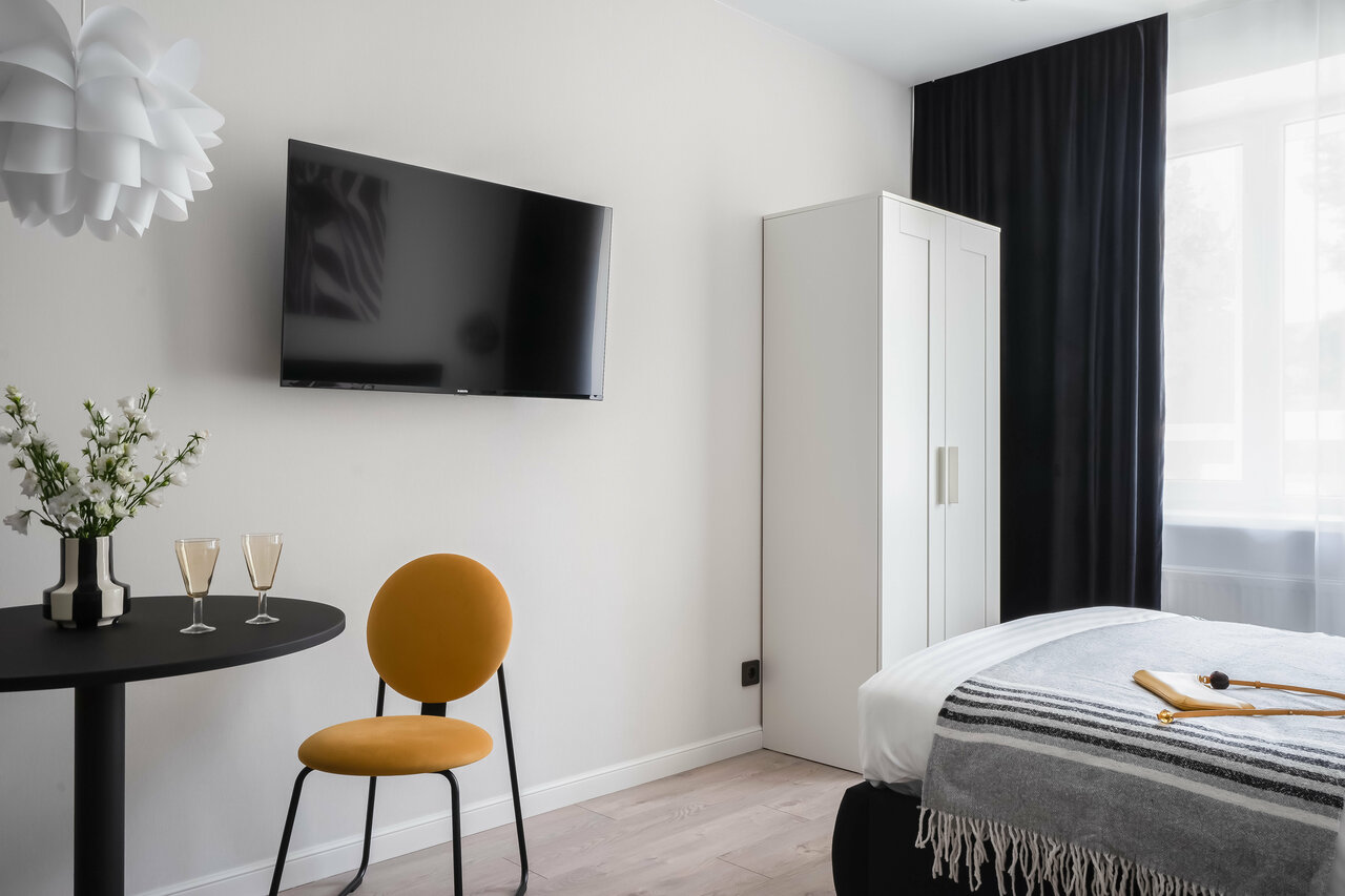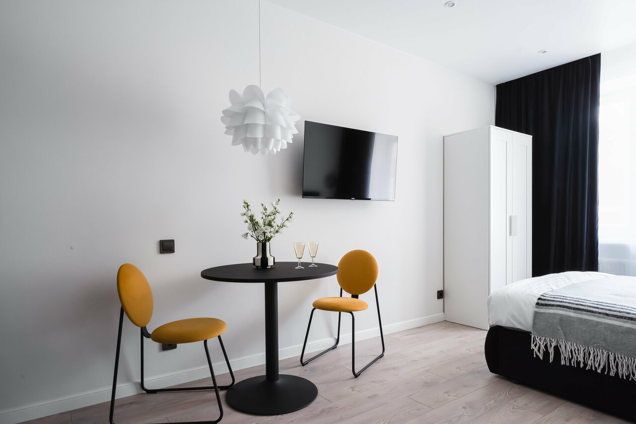 Идеальное расположение апартов- почти в центре города В студии все самое необходимо для проживания, даже кофемашина, сушилки для обуви и ролики для одежды. Все было супер