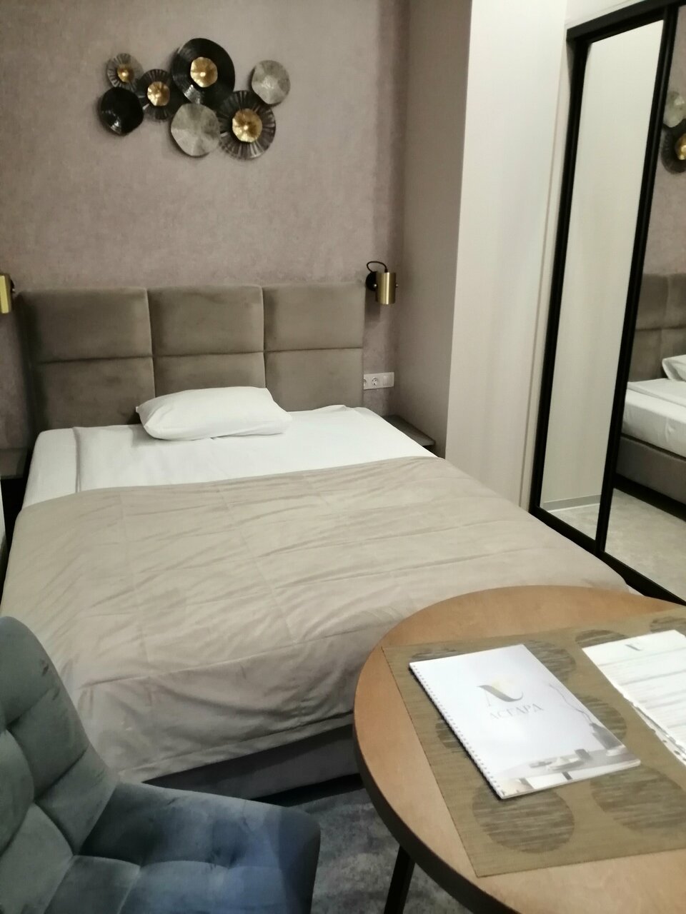 Ничего хорошего не могу сказать про отель, так как бронировал его, а поселили в квартиру в другом городе.. В момент бронирования об этом не было сказано или было завуалировано. Не понятно, как отель связан с ‘апартаментами’. Обычные однокомнатные квартиры сдаются по цене отеля :-O Номер заказа YA-1876-3891-0545