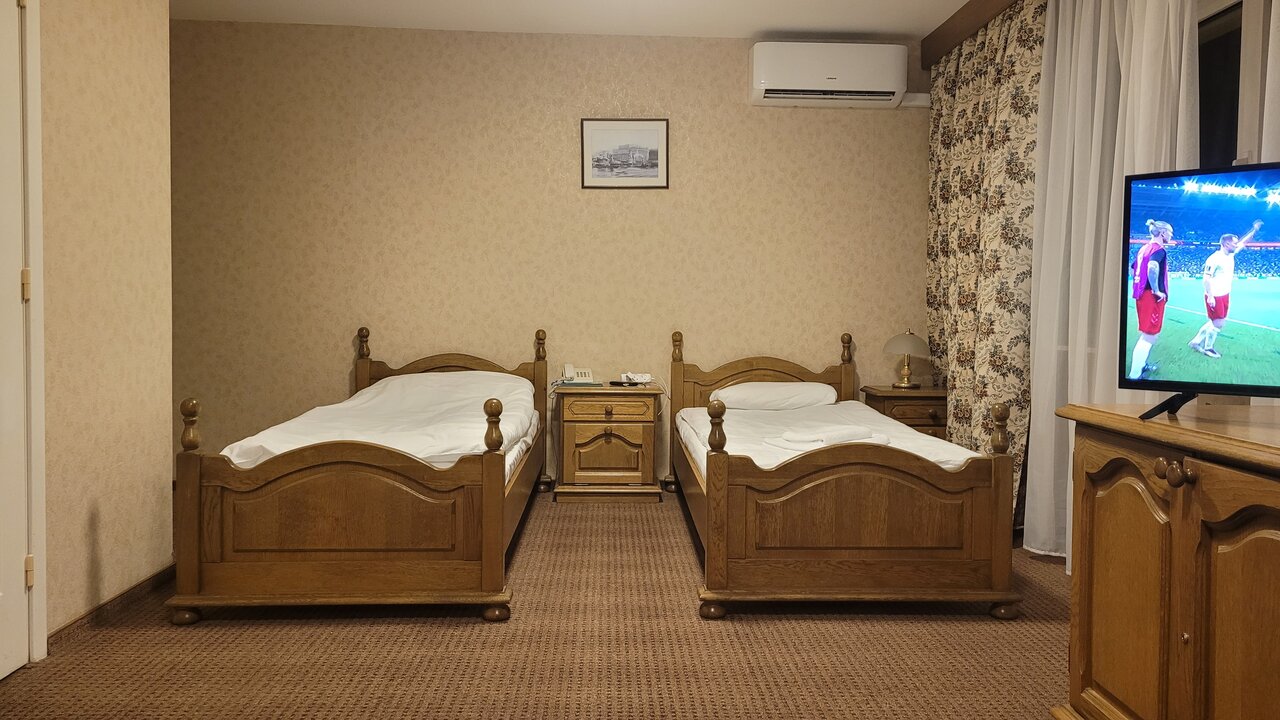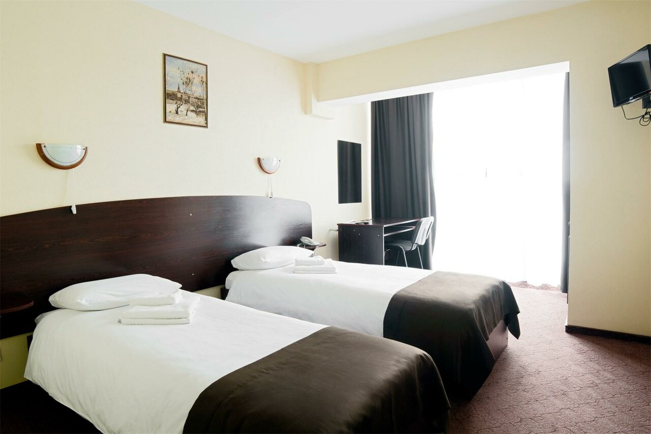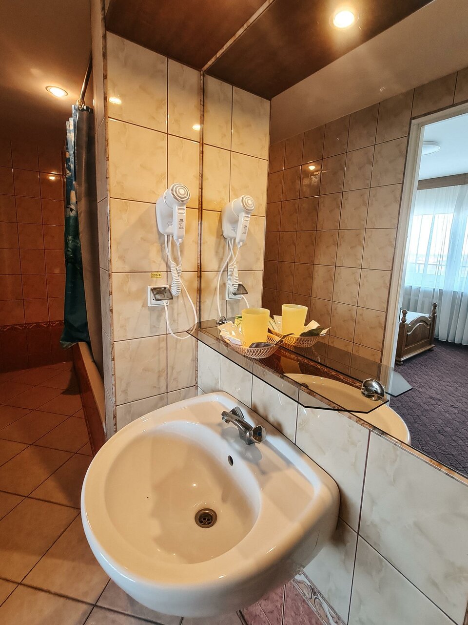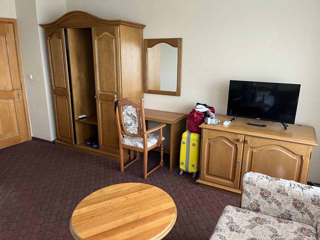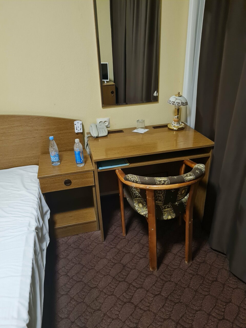 Ужас ужасный! Номера — развалина, все сыпется! Говорю про номер категории бизнес! Ремонт старый! Мебель — старье, сыпется! Открыла ящик в тумбочке, а он в руках развалился! Телевизор маленький! Холодильник весь грязный! В общем, ощущения не из приятных!!! Не рекомендую! Администрация на ресепшн не дружелюбна!Единственное что, ресторан на 1 этаже не плохой, большие порции и вкусно!