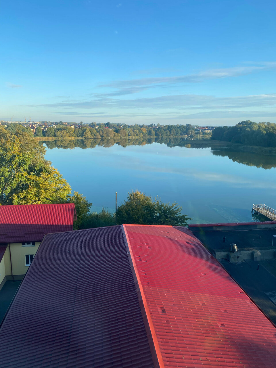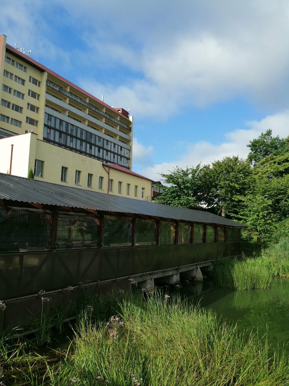 Отель требует косметического ремонта, интерьер сильно устарел. В номерах чисто, убираются ежедневно. Завтраки все однообразны, но голодным не останешься. Расположение специфическое, это окраина города, но прямо напротив есть остановки общественного транспорта. Территория отеля радует глаз, рядом живописное озеро.