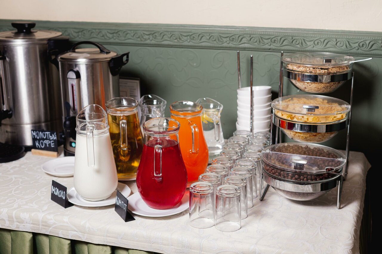 - Разнообразный шведский стол (каши, горячее, закуски, фрукты, выпечка)