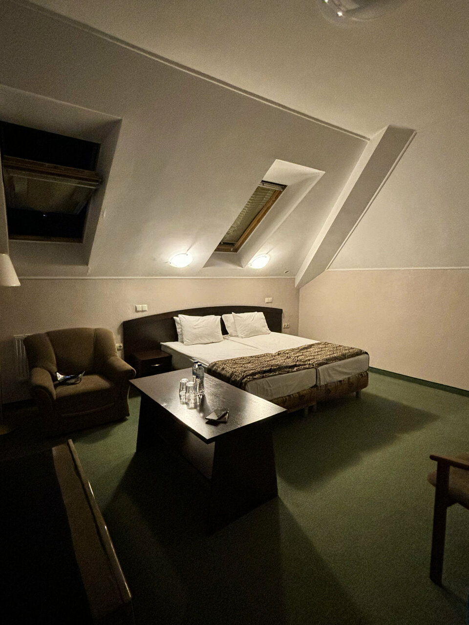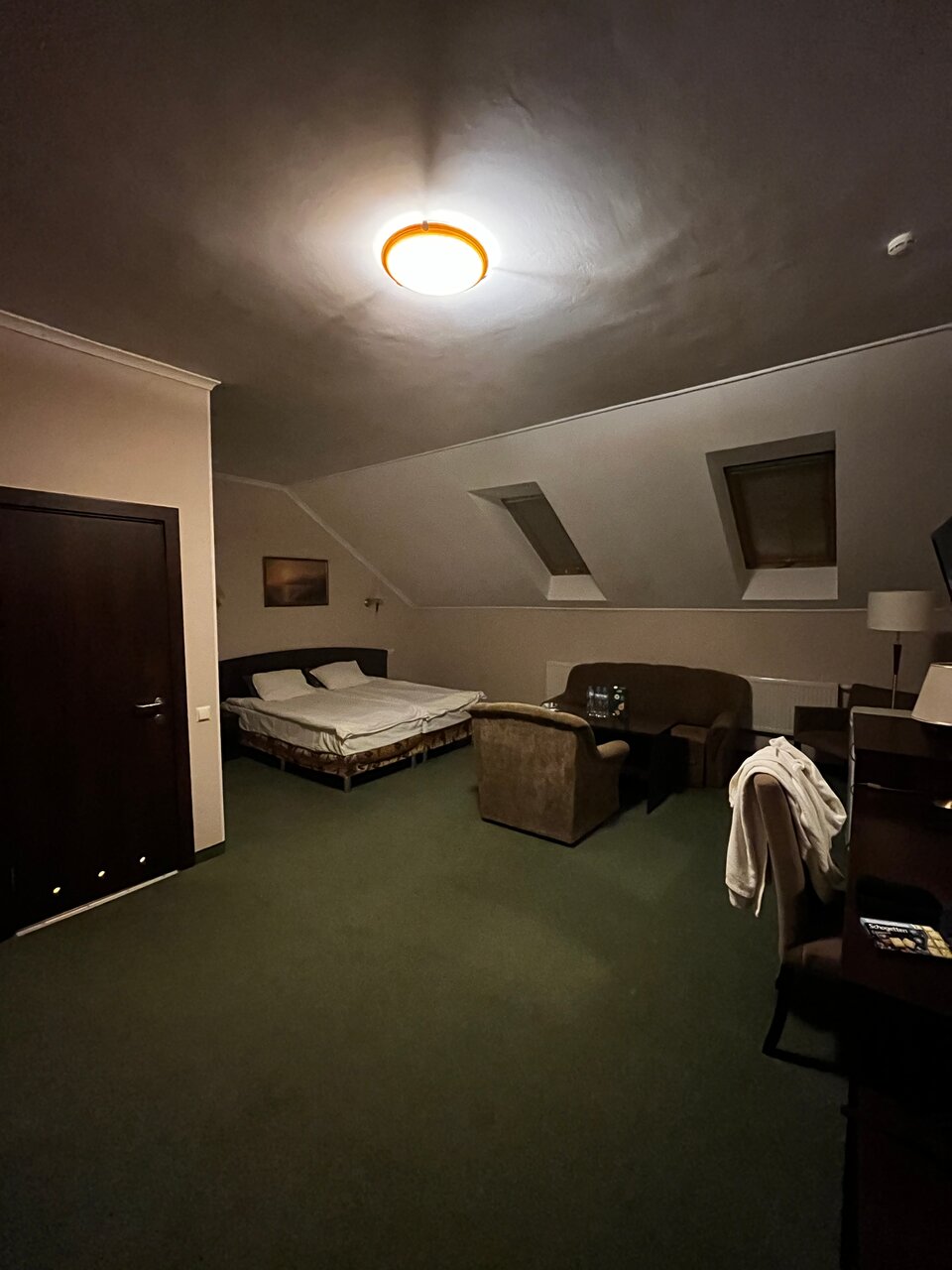 Достаточно уютный отель, в номере все есть, уборка и смена полотенец производится каждый день, смена белья по графику. Кафе при отеле, вообще, отличное, располагает к неспешному времяпровождению и приятной беседе. Персонал очень вежливый и отзывчивый. Единственный недостаток, на мой взгляд, очень неудобное расположение розеток в номерах. А остальное все устроило