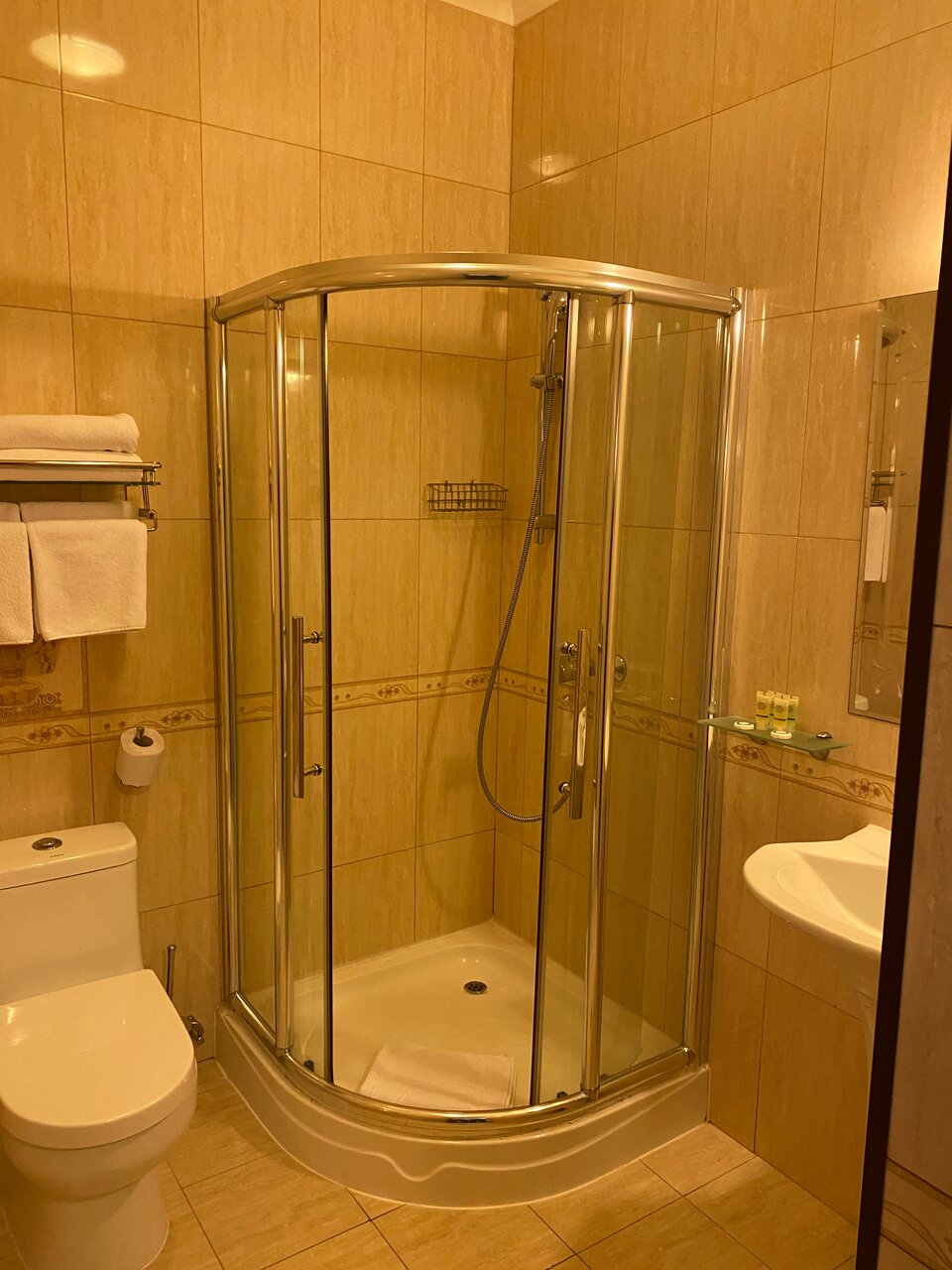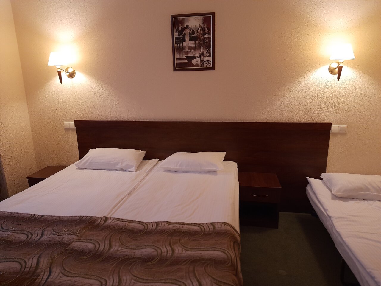 Плюсы: норм.номер, цена адекватная, кафе внизу Минусы: санузел требует реновации. Нет жидкого мыла. В кафе нет кофемашины- на завтраке кофе из ‘термоса’, скудный шведский стол.