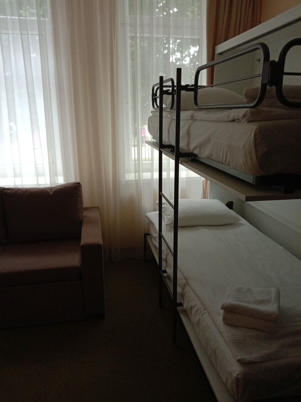 Местоположение далеко от центра. Завтраки скудные. В ванной грибок. Полотенца рваные. На рецепшене очередь. Места подождать нет. Слава богу, что брали номер на одну ночь, просто переночевать с дороги.