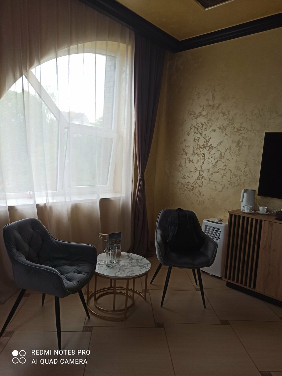 Р — разочарование На Яндексе было указано 4* но это никак не соответствует действительности. Начнём с номера: в нем практически отсутствует свет. (См фото). В ванной такая же история — лампочка в нише, поэтому на зону умывальника с зеркалом свет не попадает. Вместо тумбочки у кровати стоит пуфик. Вместо стола очень низкая полочка на которой можно попить чай. Шкафа тоже нет, только вешалка. Завтрак континентальный. То есть ты заказываешь по меню и тебе приносят. Несут долго, половину блюд за полчаса до конца завтрака уже нет. Завтрак подают в подвале, где тоже нет света. Но зато есть пилоны. В подвале не ловит мобильный интернет. Есть вай фай, но от него никто из персонала ресторана не знает пароль При заселении просят заполнить длинный договор аренды. Что меня сильно удивило. Про завтрак ничего не сказали, пока сами не спросили. Говорят тут есть сауна и бассейн, но нам тоже ничего о них не сказали. Нам тут еще 3 дня, так что есть вероятность что отзыв я дополню.