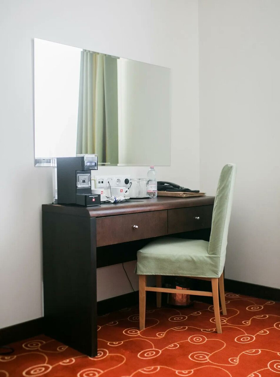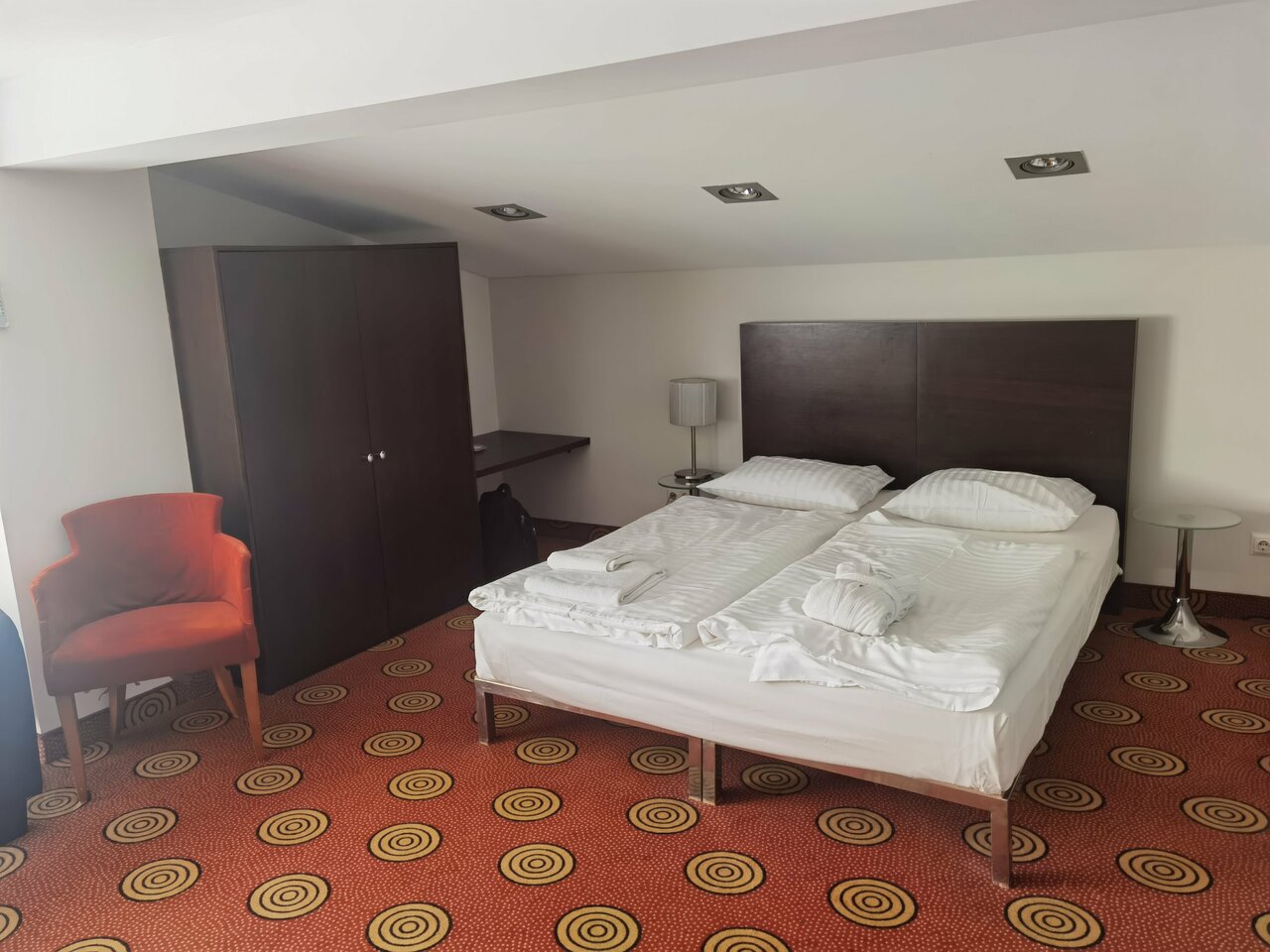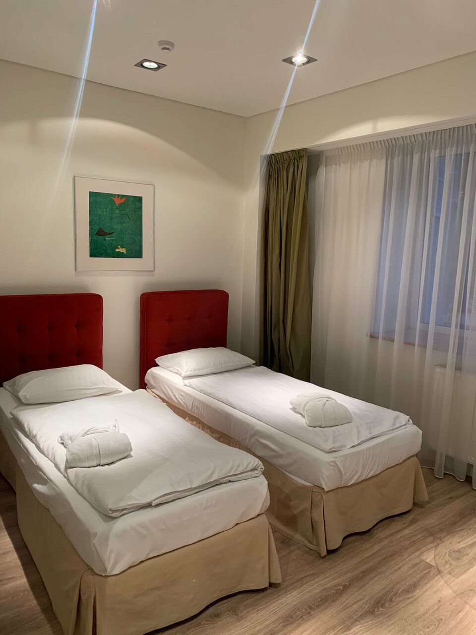 Хорошие кровати, но узкие)) чудесный конференц-холл на 3 м этаже, но без окон. Завтрак: каша всегда, сырники — всегда, фаршированные блинчики — всегда. Капучино и латте — нет. Добавляем молочко из кувшина или порционные сливки. Сантехника — на твердую 4ку, но напор не супер-пупер: массаж душем не получится. Зубной пасты и щётки в бесплатном формате нет. Отопление — очень комфортно. Персонал — очень вежливый. Особенно на кухне. Полотенчики — мягкие. Телевизор расположен удобно. Не хватает чуть-чуть размаха окон для более качественного нанесения макияжа. Но зато — можно чудесно выспаться.