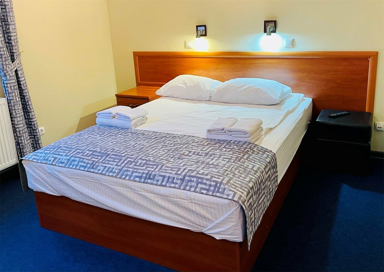 Цена указана 'От' с человека в сутки с 3-разовым питаниемВ каждой комнате: современная мебель, телевизор с цифровым тв, мыло, кондиционер, холодильник, сейф, чайник с чайными принадлежностями, фен, ортопедический матрас, полотенца, санузел, Wi-Fi