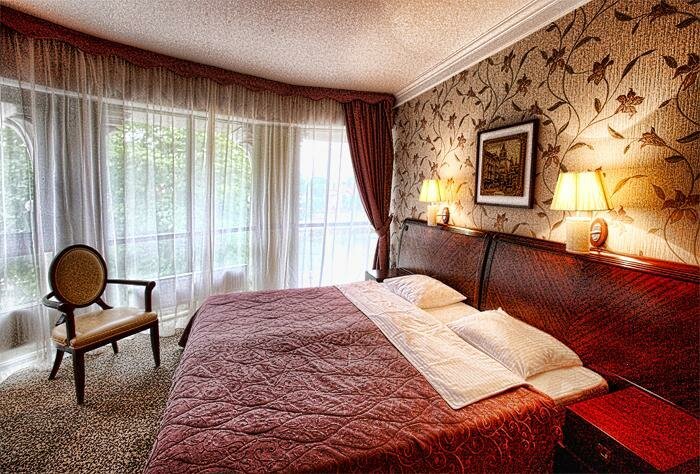 Отель расположен в живописном месте, на берегу Верхнего пруда. Вокруг прекрасный вид и архитектура. Отсутствие многоэтажек и ощущения города. Сам отель за очень демократичный прайс, предлагает номера с великолепным видом, удобной кроватью с отличным матрасом. Отель очень чистый и ухоженный, хоть и видно, что возрастной. Уборка каждый день, качественная. Завтраки прекрасные, по домашнему. Рядом есть чудесный ресторан Чайка у озера в итальянском стиле, с отличным видом, и вкуснейшей кухней, где бесплатно угощают просекко. Очень рекомендую отель.