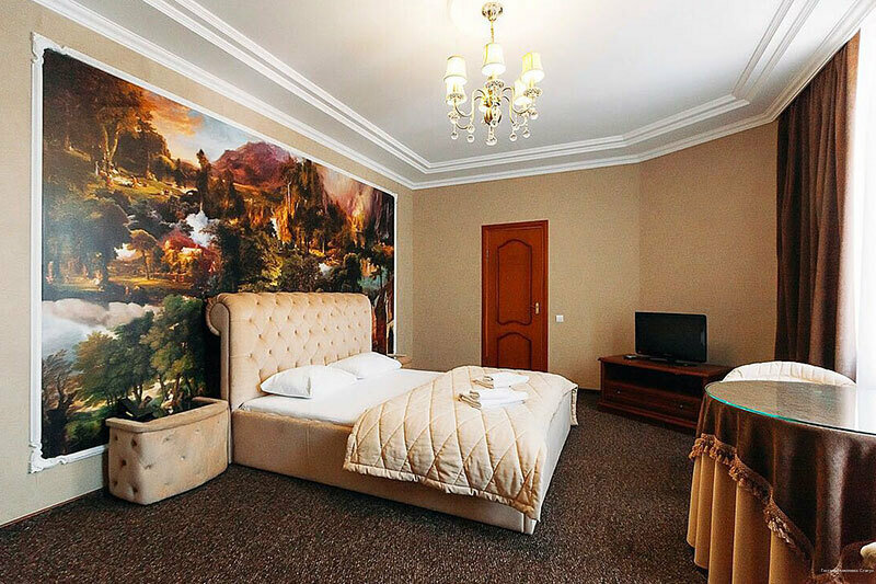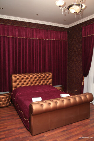 Номер категории «Эксклюзив» площадью 45 м² имеет уникальную круглую планировку с витражными окнами, балконом и купольным потолком с хрустальной люстрой. В номере большая двуспальная круглая кровать, белая мебель и просторная светлая ванная комната...