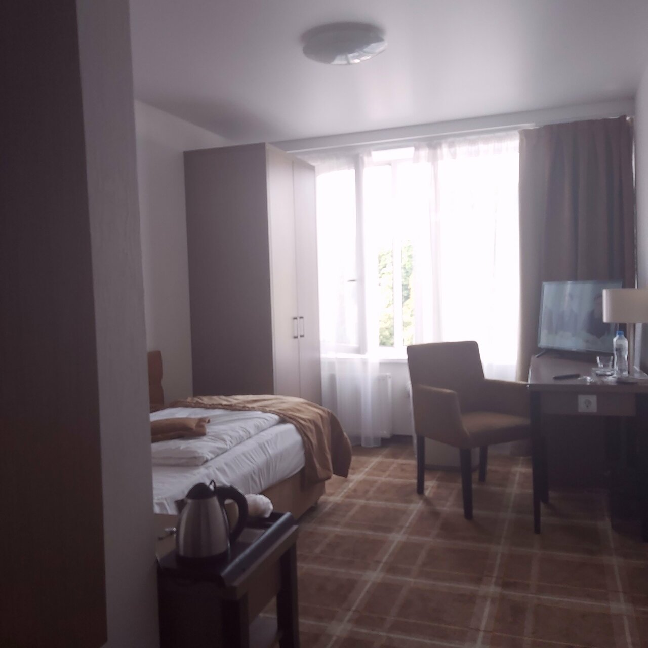 Очень достойная гостиница,чисто ,уютно. Вполне пригодна для проживания,есть всё,что нужно для первой необходимости. Завтраки вкусные и разнообразные. Единственно не помешал бы освежитель воздуха в ванную комнату.