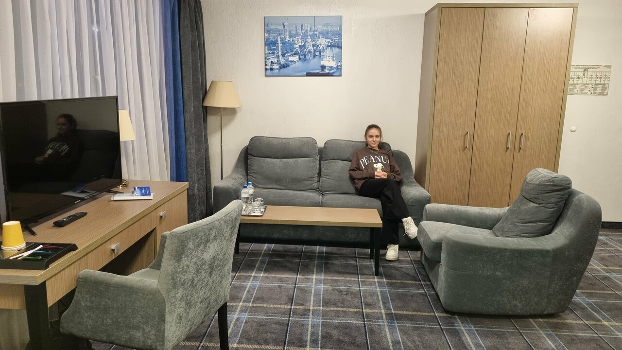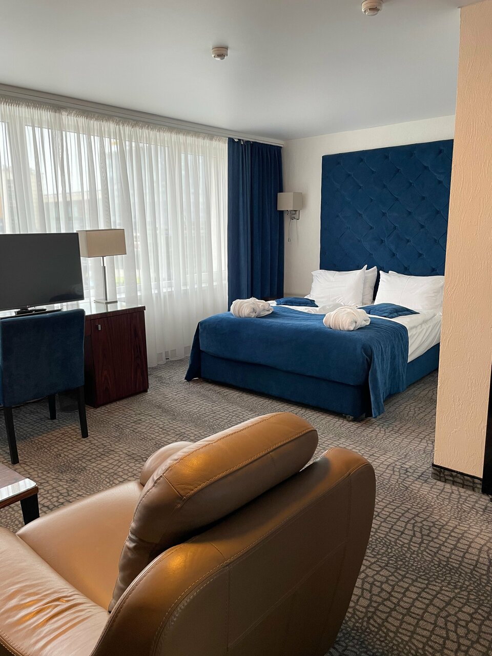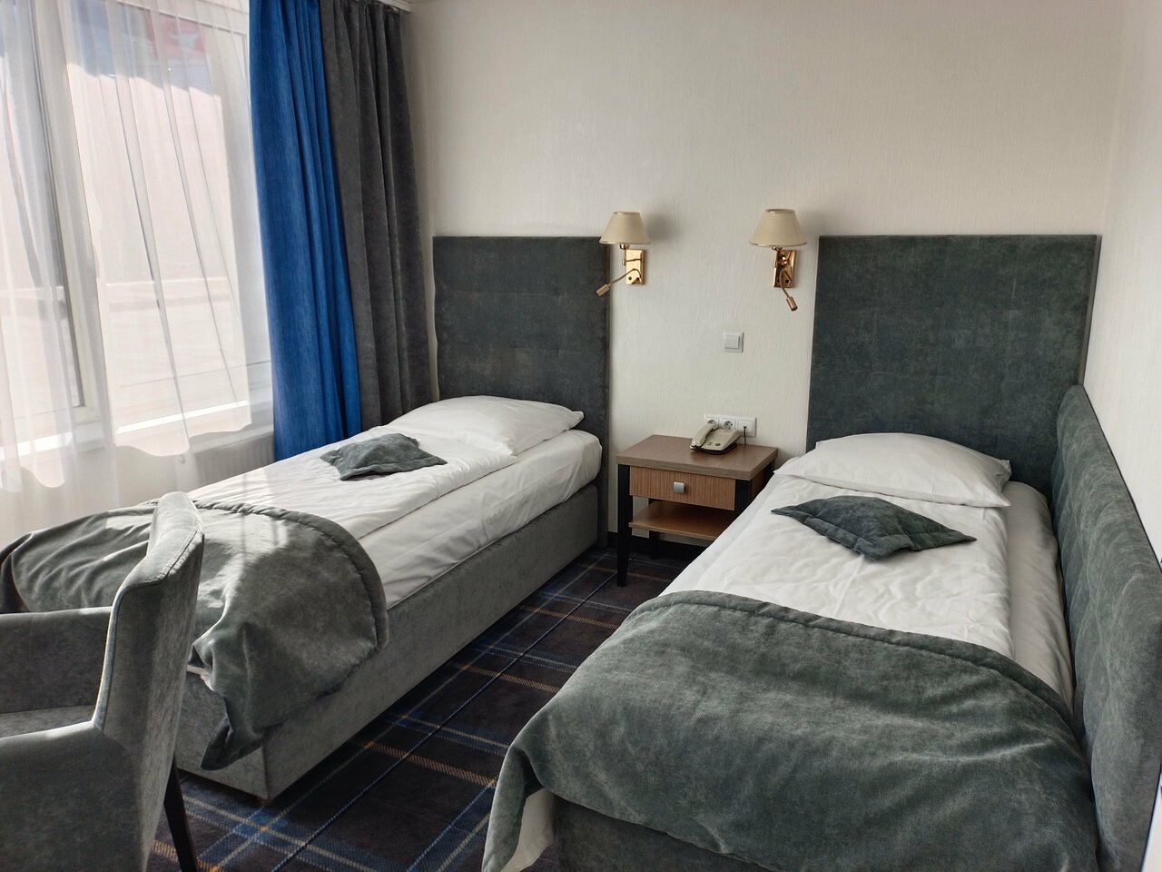 Хорошее расположение гостиницы , все рядом. Трансфер, номера окнами во двор, кроме чаек никто не орал, номера! Номера брали стандарт бизнес класса. В номере чисто, удобная кровать, только подушки не очень. В номере всё есть, чайник, чай, кофе, вода. Всё докладывали каждый день. Хорошие завтраки, вкусный кофе.