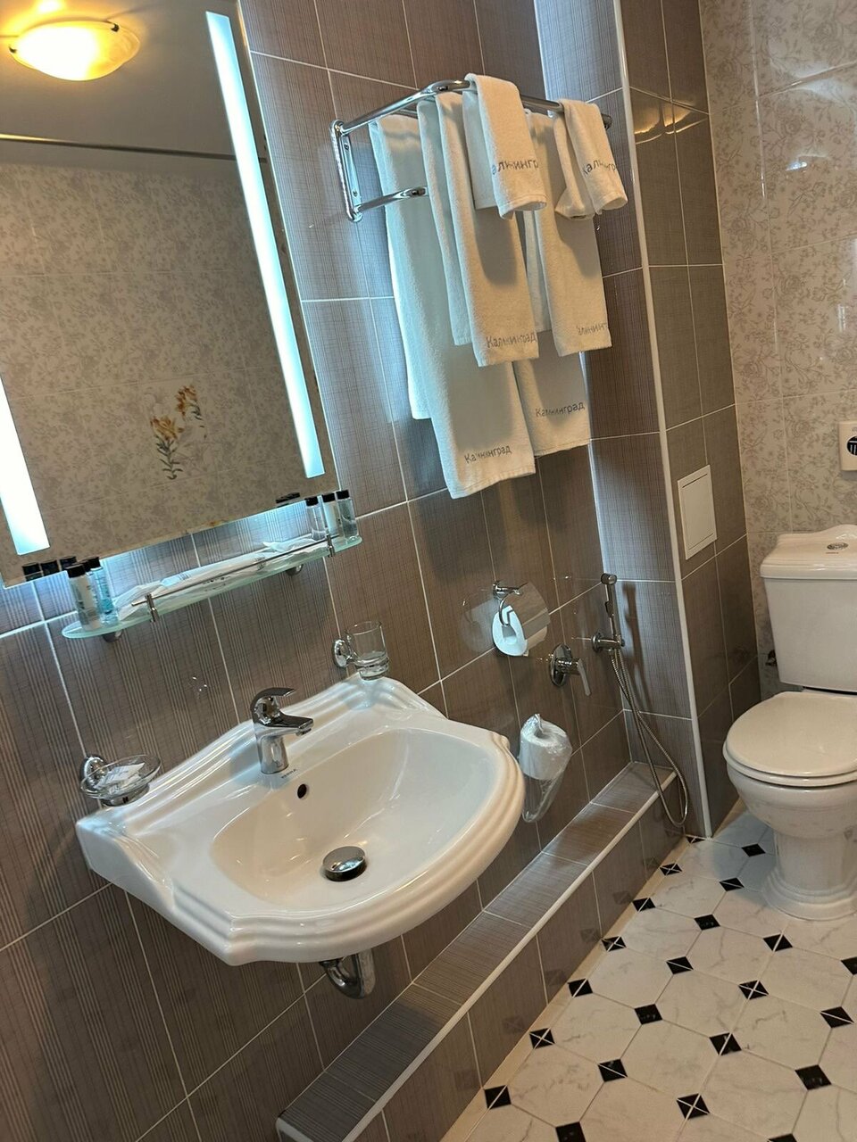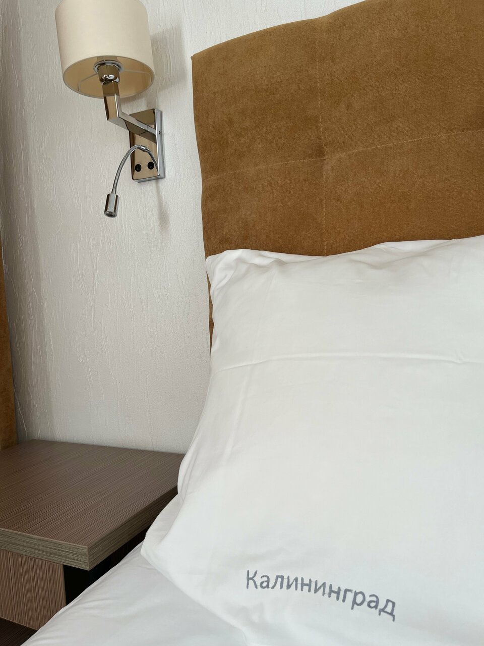Были с мужем в Калининграде и остановились в гостинице Калининград. На стойке регистрации приветливые администраторы, заселили без проблем. Номер был 2- х местный стандарт с двуми раздельными кроватями. Номер тесноват, но приходили только ночевать, поэтому неудобно не было. Постельное и полотенце белые, без пятен. Мне не хватило в номере фена и тапочек. Были шампунь, кондиционер для волос и гель для душа. Брали завтраки. Вкусно, было всё, что необходимо для хорошего завтрака. Кофе с кофемашины, блины, оладушки, омлет, творог, яичница, сыр, колбаса, масло хлеб, каши, консервированные ананасы, персики, джем, огурцы, помидоры, оливки, салат из капусты и печенье, были фрукты (грейпфрут). Гостиницей довольна, удобное место расположение, все достопримечательности в пешей доступности. Рядом кафе Поварешка, отличное кафе,большой выбор еды,болтшие порции и очень вкусно!Если будем ещё в Калининграде, остановимся здесь.