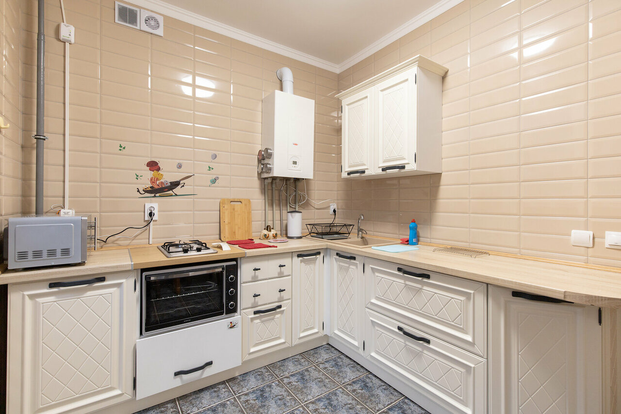 Большие, удобные, светлые апартаменты. 4 спальни, большая кухня, классная лоджия и уголок с камином! 2 удобных санузла. Местоположение очень удобное- рядом парк, кафе, спар, до центра автобусы, трамваи, такси. Отзывчивый администратор — быстро нашла нам сидушку для ребенка)